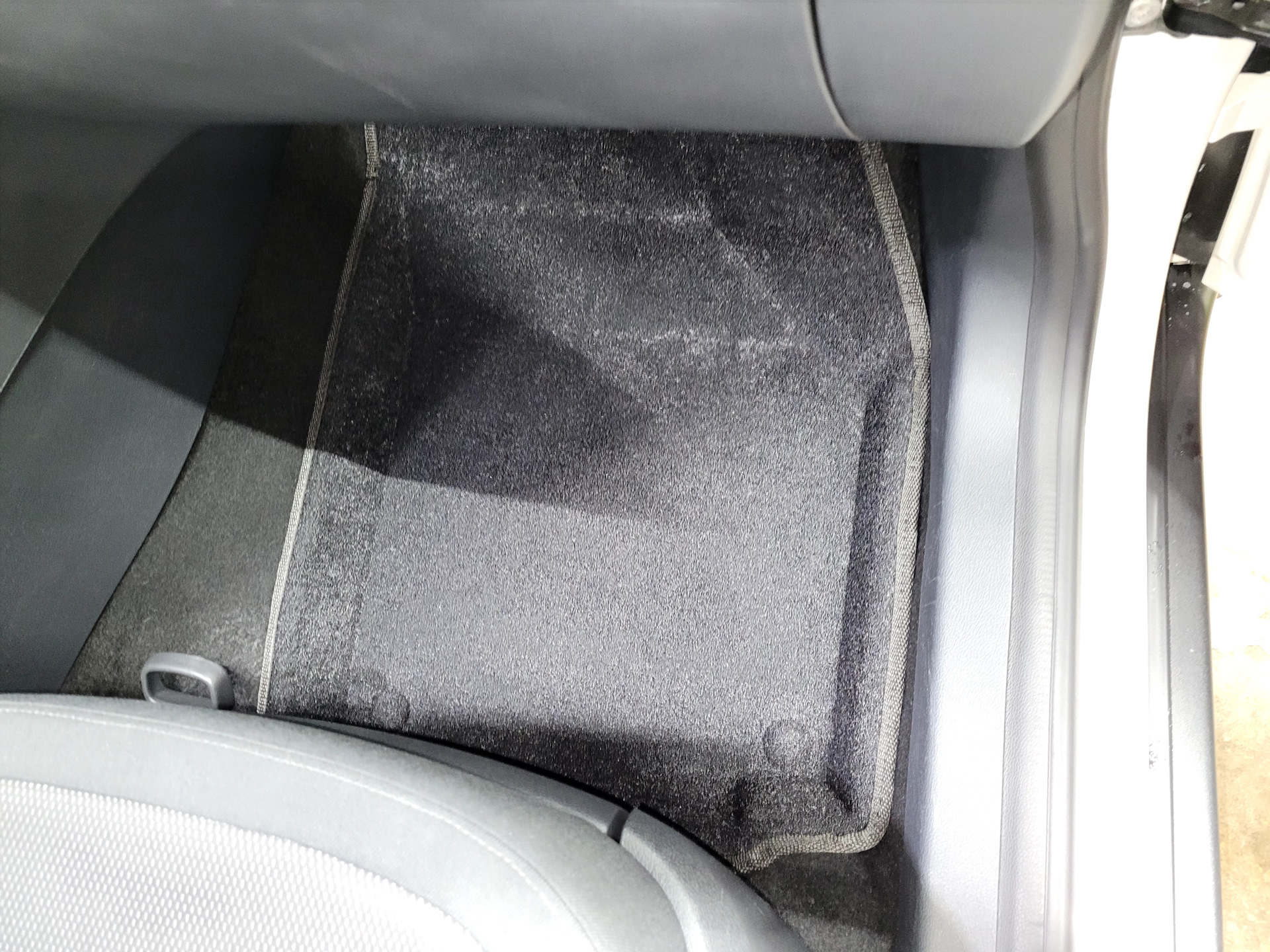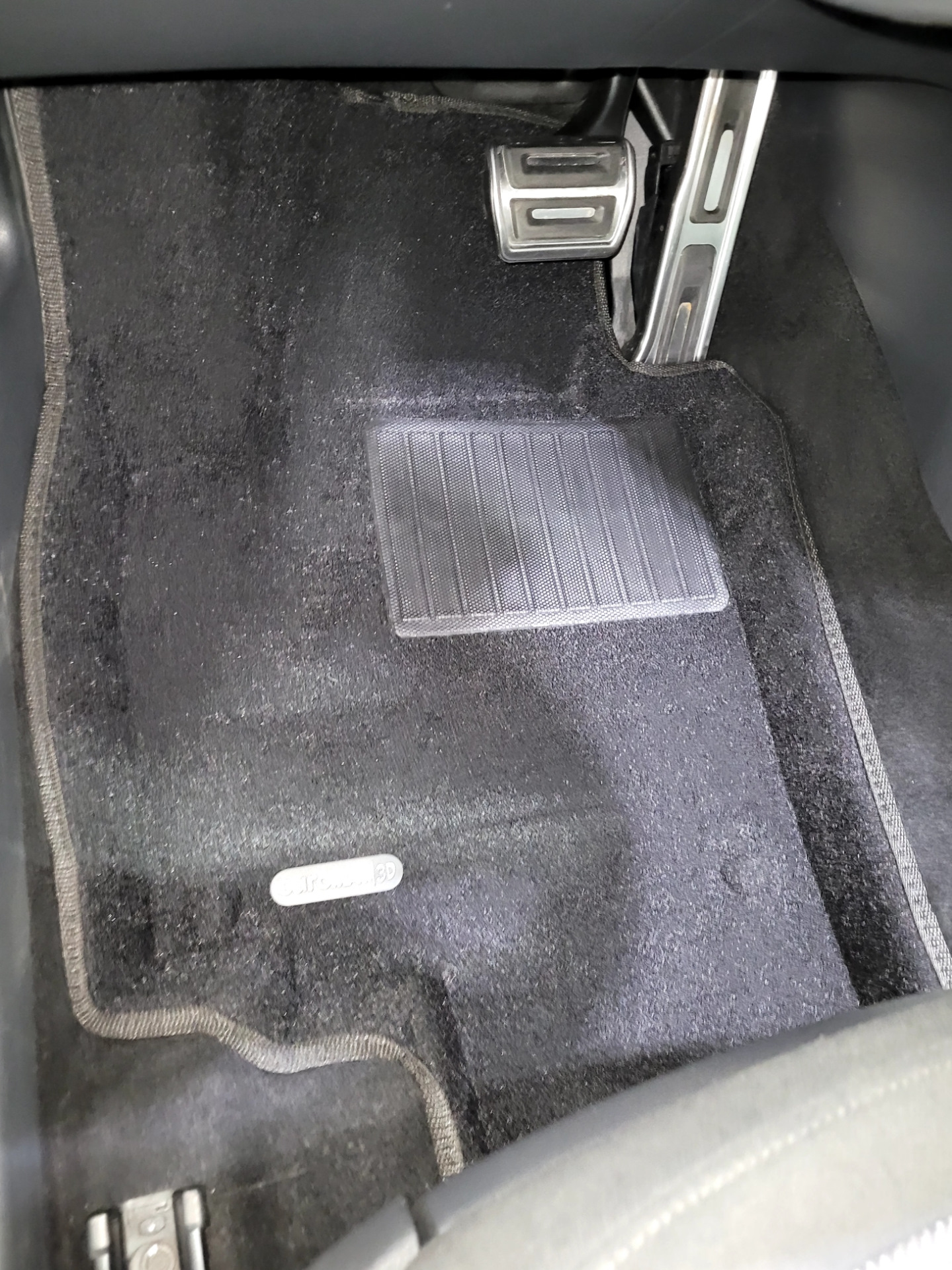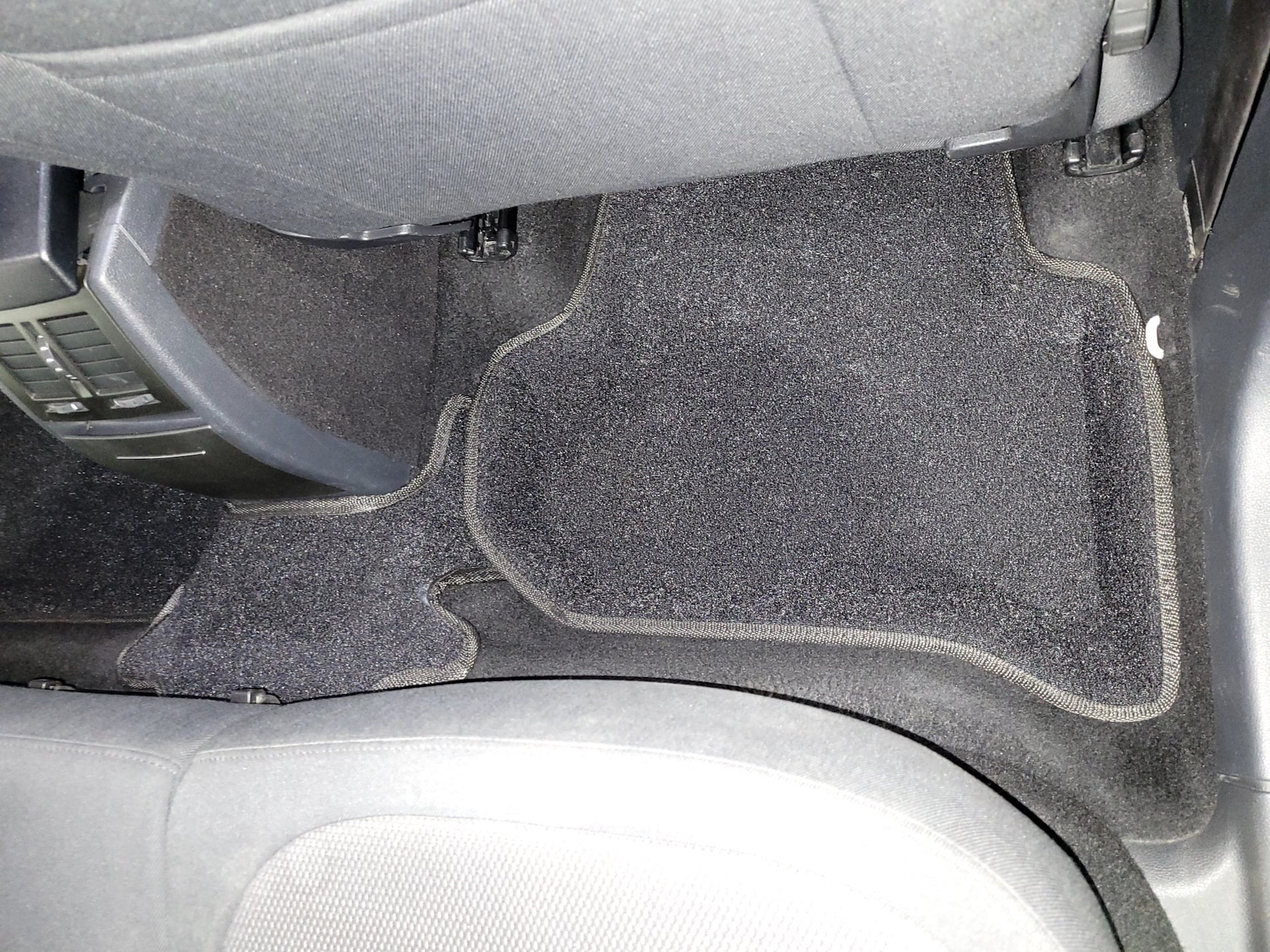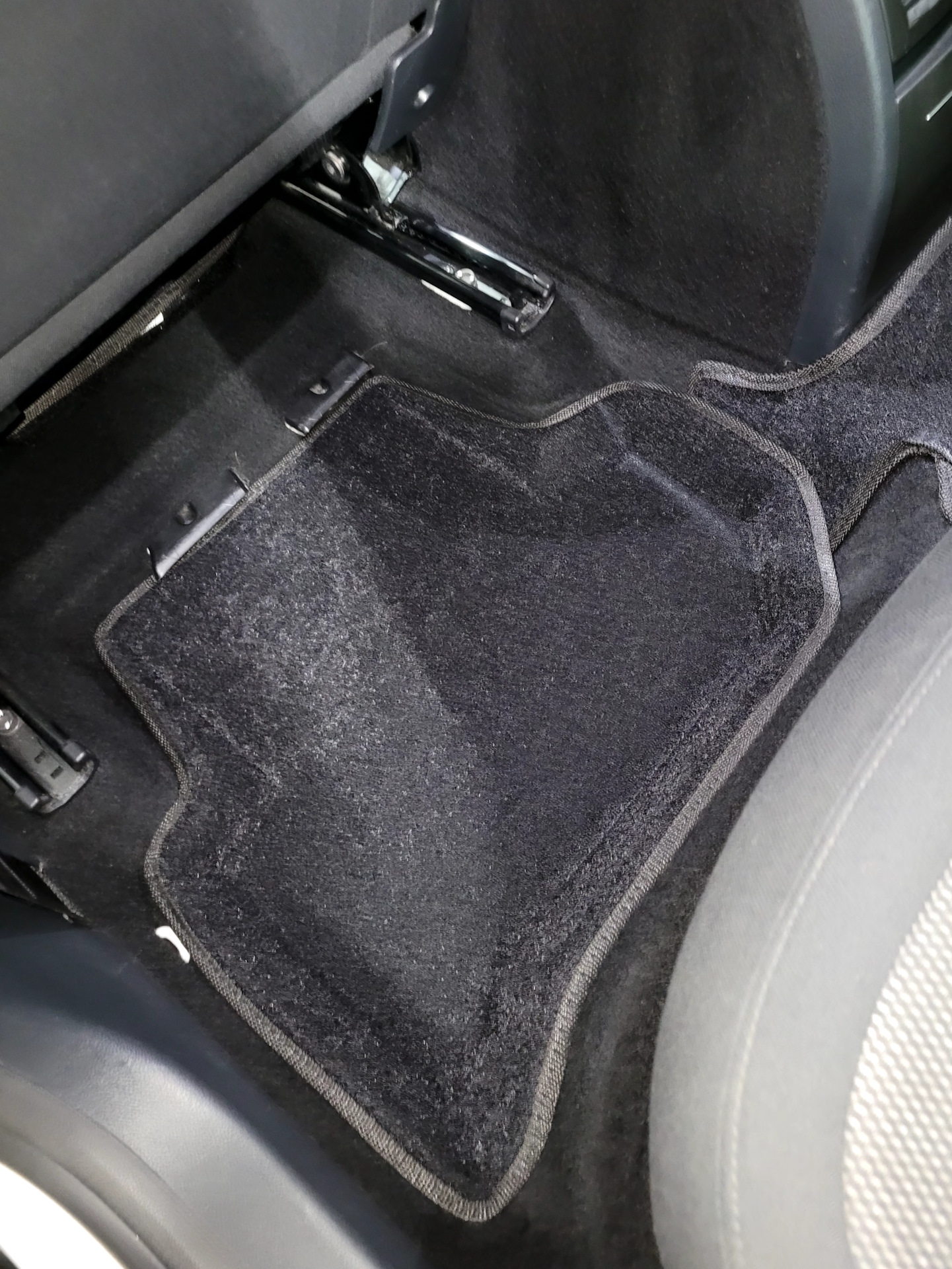 Что не понравилось, помимо упомянутого коврового верхнего слоя, отсутствия штатных креплений к полу. Производитель мотивирует это отсутствием лишних дырок через которые вода может попасть под ковер, что странно слышать когда они фирменный лейбл на водительском сажают на сквозные шпильки, не говоря про металлический подпятник в премиум серии, там как раз он и протекает у всех зимой (из-за этого в частности и была выбрана серия бизнес с пластиковым подпятником). Не понравилось так же, что передние ковры сильно заходят за сидения, из-за этого их установка в салон сильно затруднена, надобности в таком большом покрытии пола нет даже при полностью отодвинутом переднем сидении, вытаскивая грязные ковры, половину мусора с них просыпишь при наклоне.
