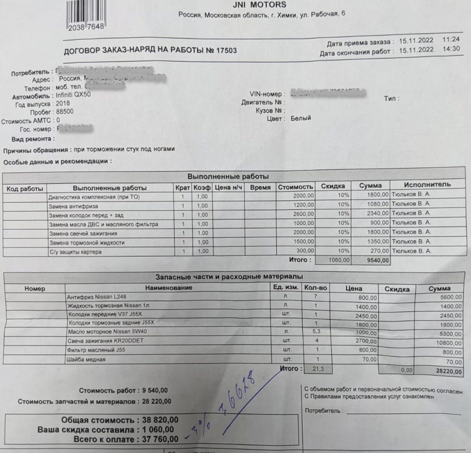 Делал как раз недавно у них. Без фильтров салона и двигателя конечно (купил на али оба около 1,5к и поменял сам), но зато со сменой колодок и перед и зад