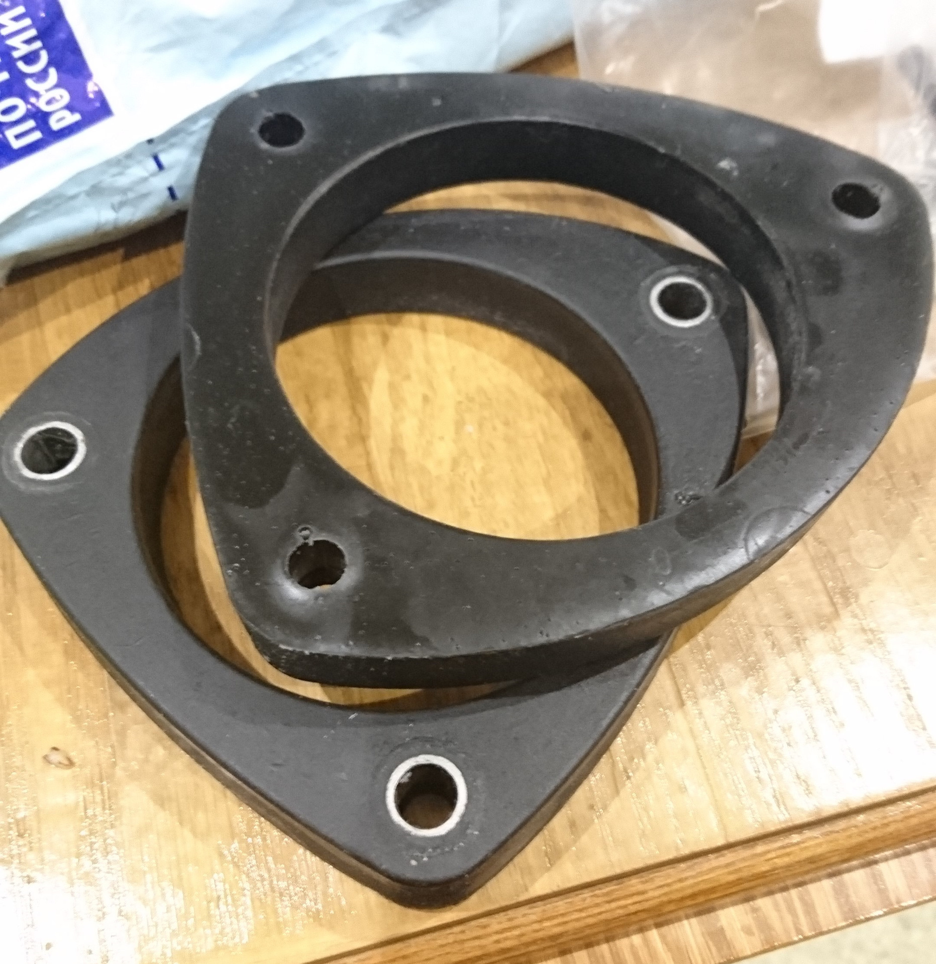 Ну вот и вид самих проставок после 95 000 км пробега. Ничего в них не изменилось, они не продавились, не лопнули, не просели, никак не испортились. Поэтому могу вполне рекомендовать тем, кто хочет немного исправить положение от просевших пружин за долгие годы.