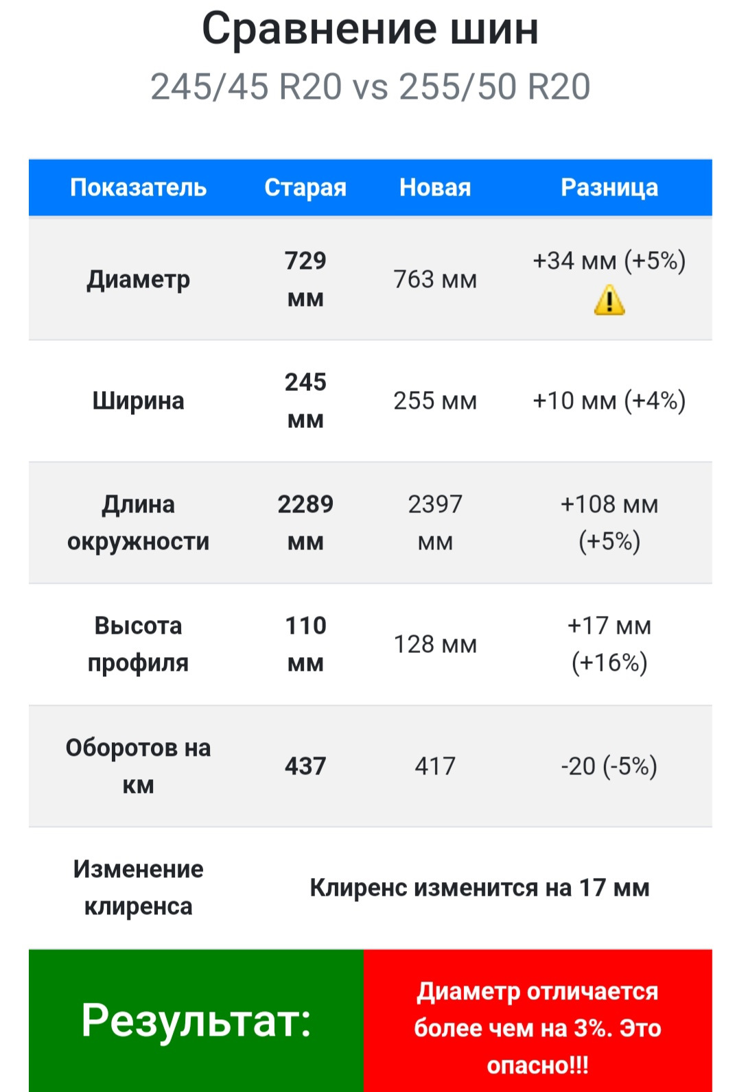 Добрый вечер, интересен опыт установки нештатного размера шин, себе поставил 245/45 R20, но душа просит профиль повыше, да и пошире 😁.