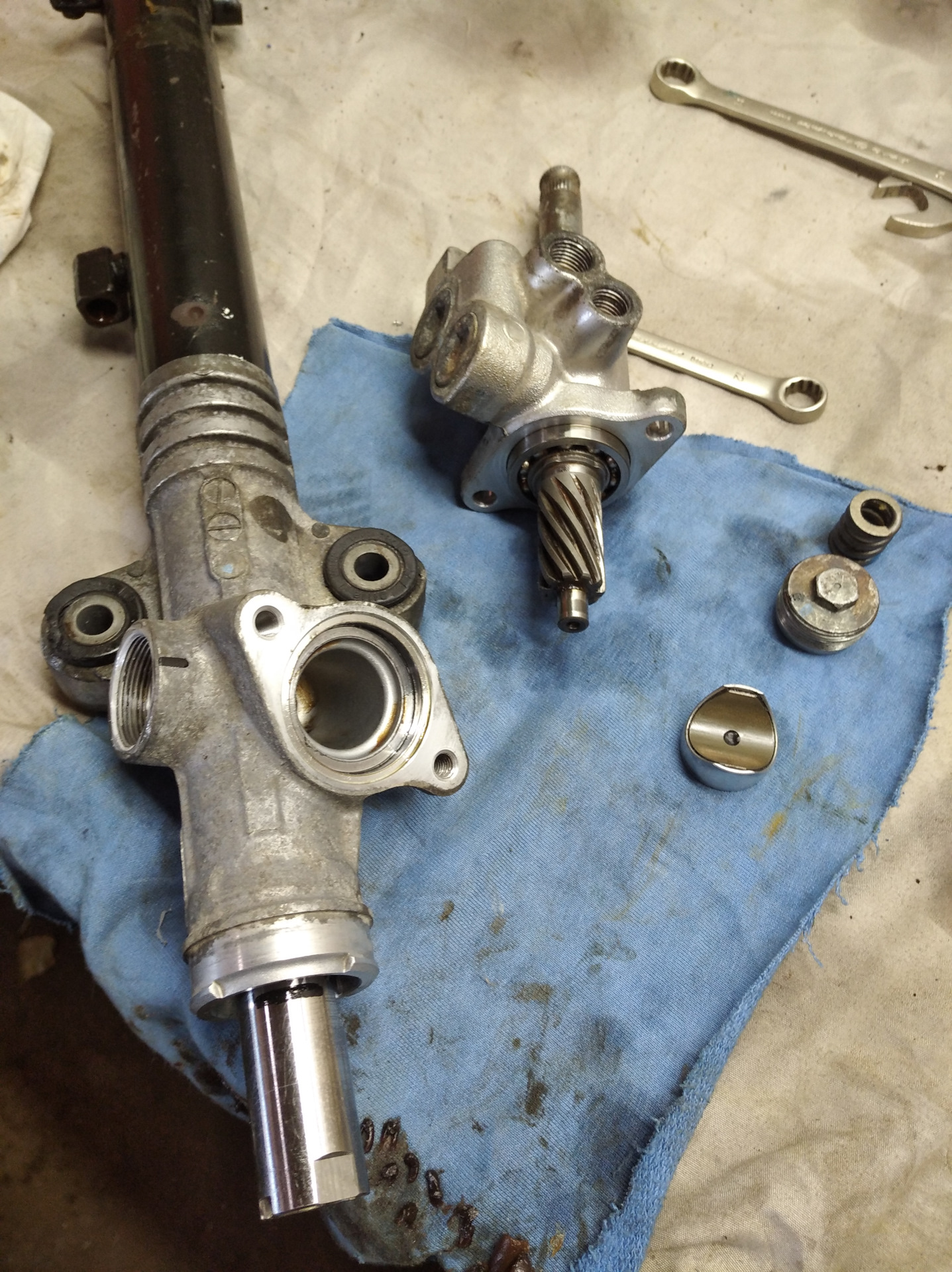 Для этого понадобилась собственно рейка). Новые тяги, пыльники, хомуты, смазка, жидкость ATF3, купил крепление рейки аля Cusco. Заменил сразу верхний сальник. Немного свободного времени. Так как тяги у сти немного длиннее, пришлось их на сантиметр укоротить и прорезать резьбу на столько же. Остальное болтон.