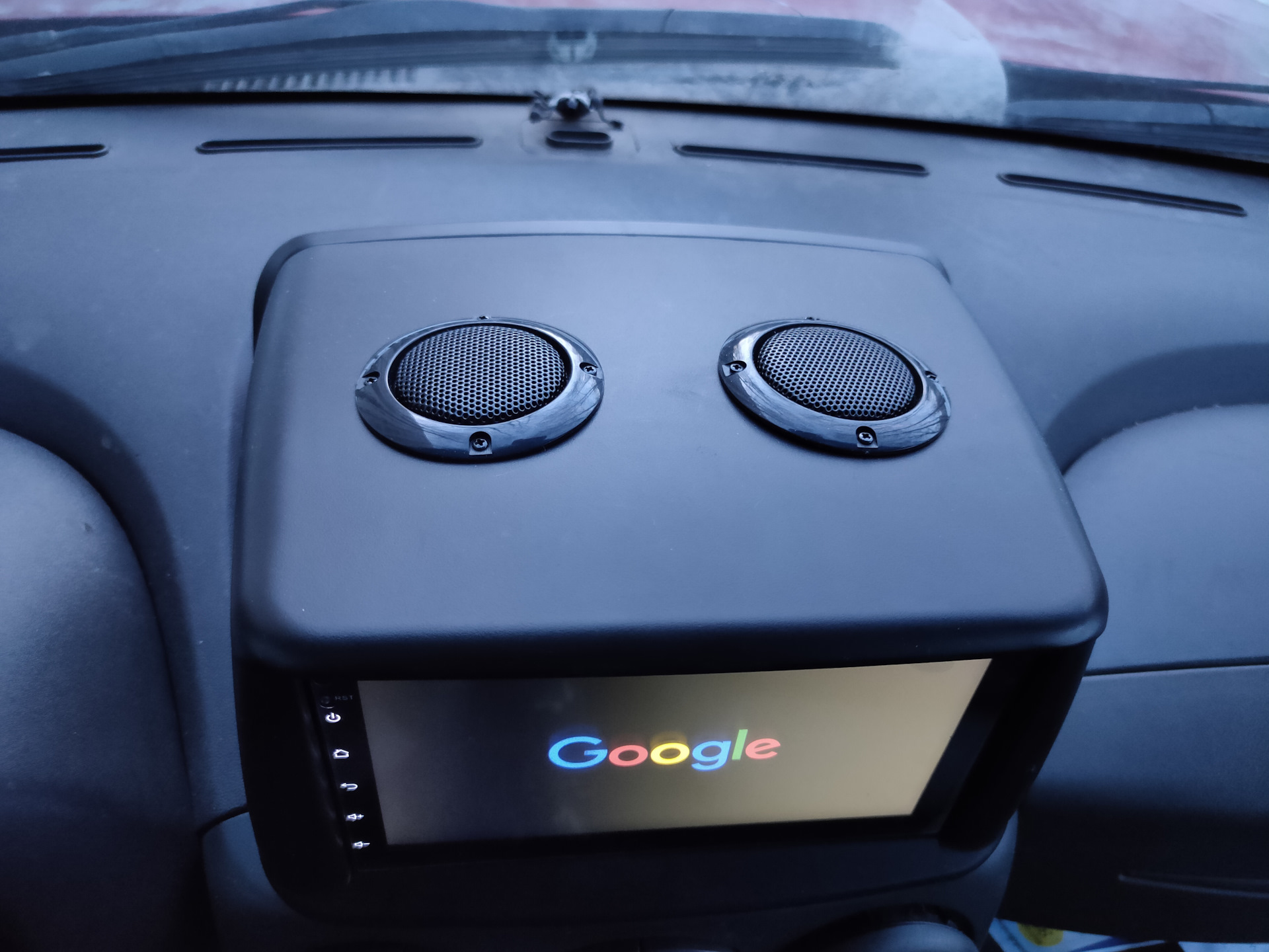 Чтобы магнитола не грелась, врезал в рамку пару решеток от акустики: