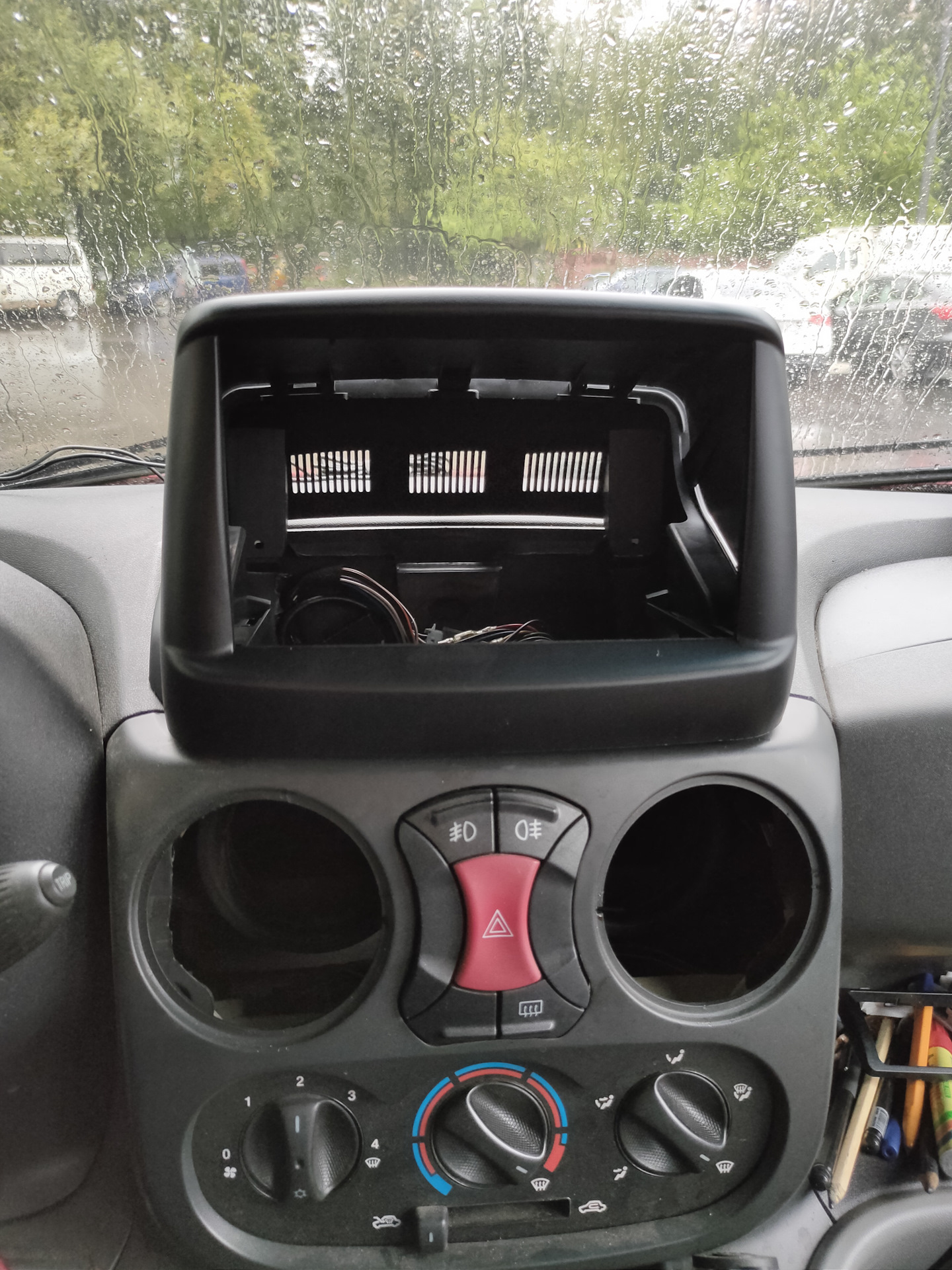 Сначала снимаем старое, для этого вытаскиваем магнитолу, вытаскиваем воздуховоды, откручиваем 4 шурупа.