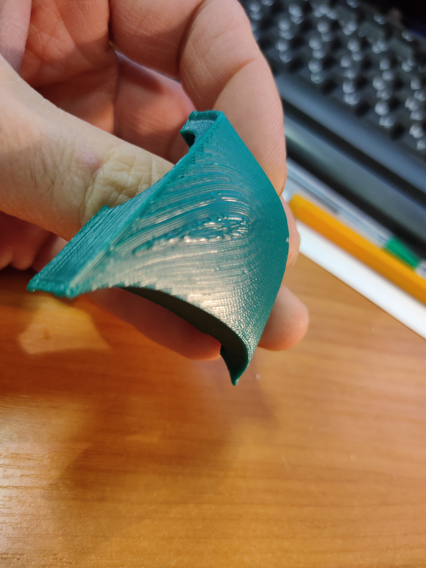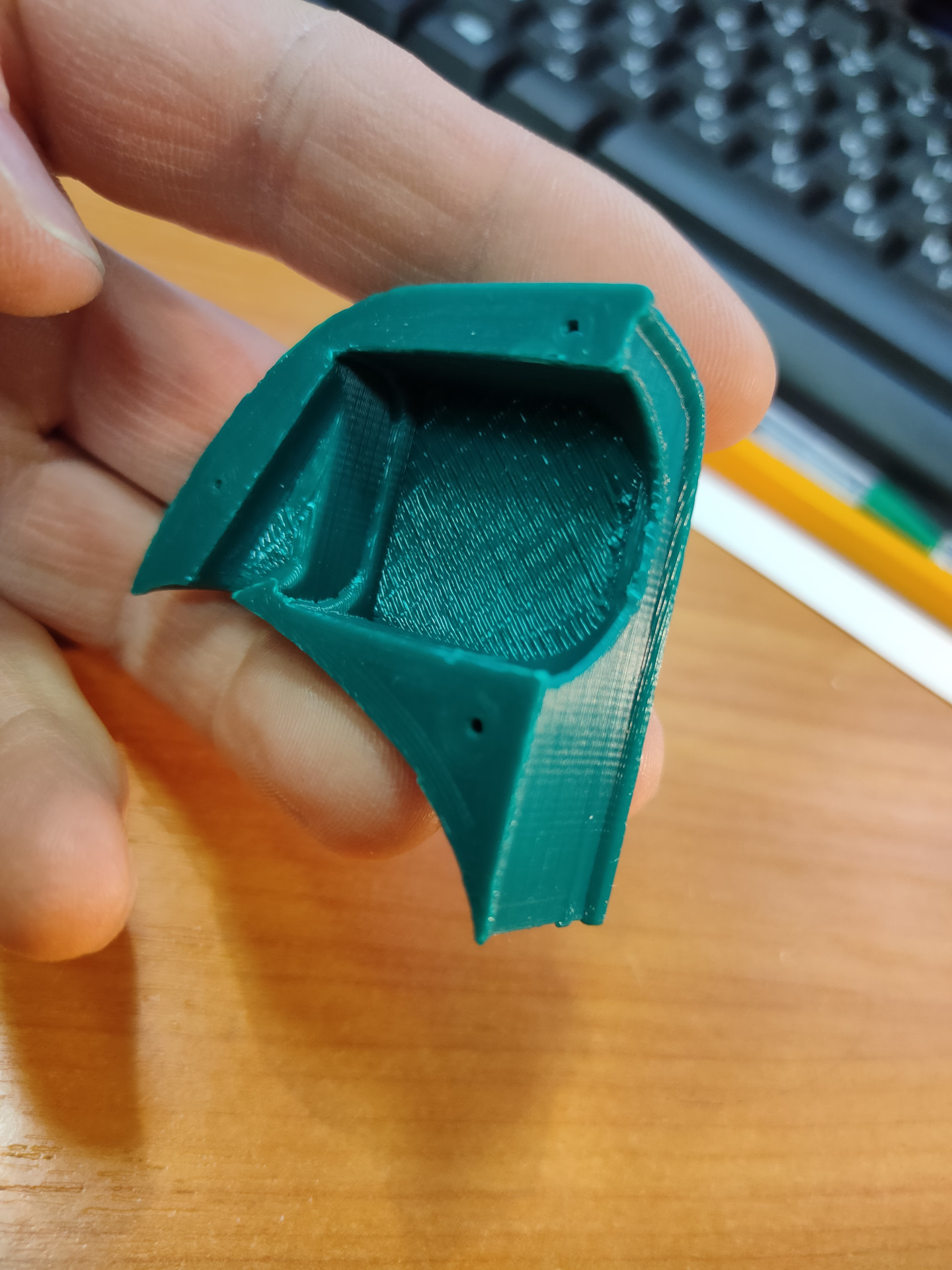 Переходник пришлось немного донапилить, модель получилась неидеальна. :( Посажен на двухсторонний скотч, и пару саморезов изнутри. Половинки — просто склеены на суперклей.