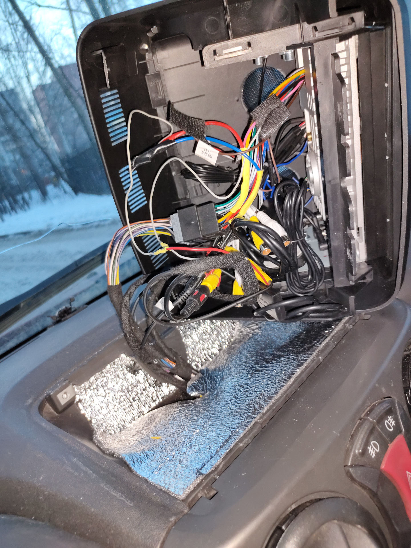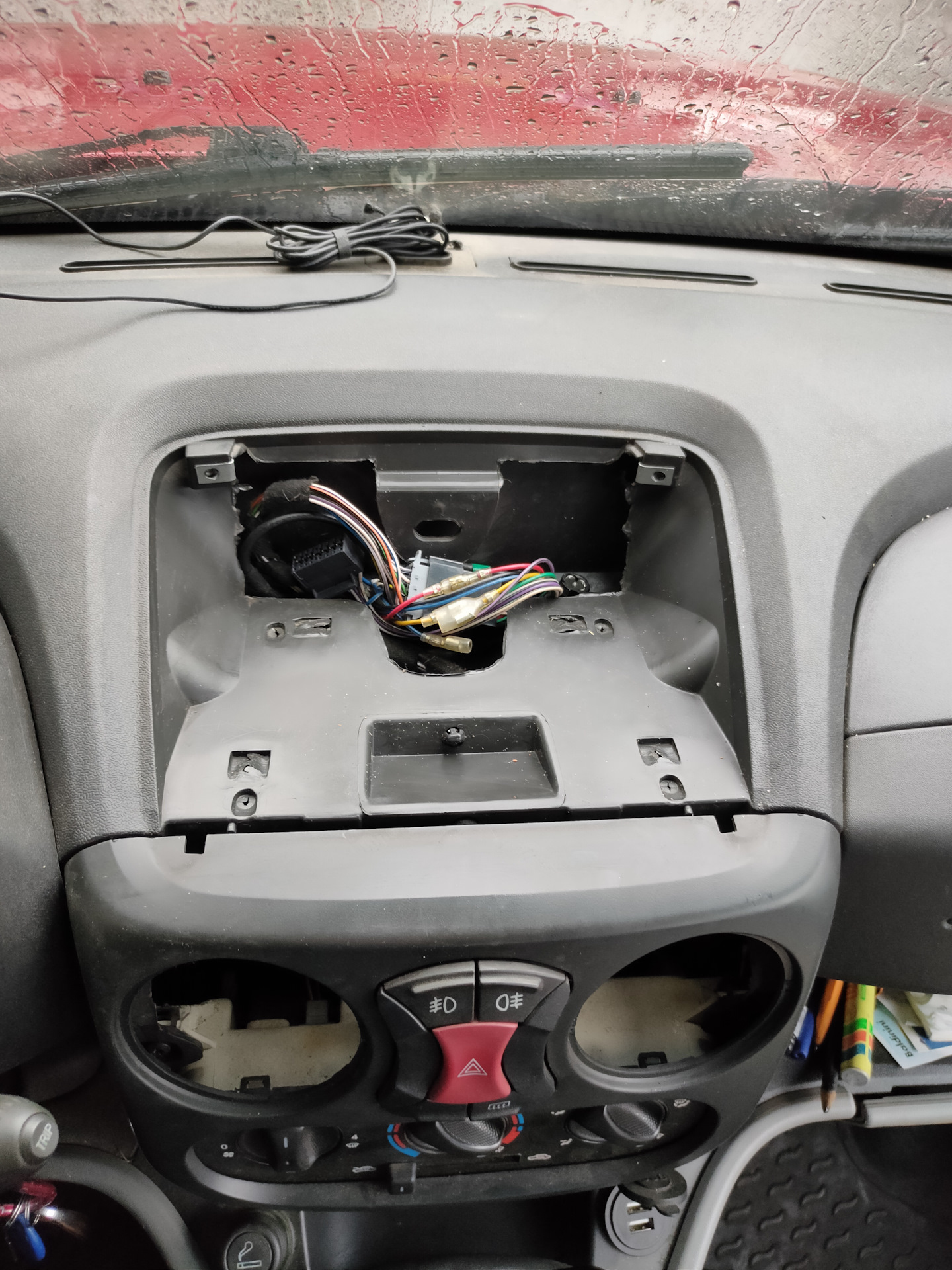 И вывести флешку наружу, пока лень врезать ее в рамку. Магнитола не прикручена, если что к флешке так лазаю. :)
