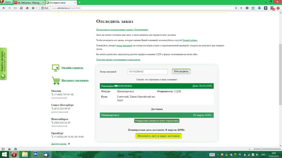 Но есть одно НО, 25.03.15 я уезжаю в отпуск на 2 недели. Пишу в доставку на счет поменять дату, мило беседуют, но дата остается прежняя. Немного поразмыслив пишу доверку на получение груза и спокойно уезжаю. Обстоятельства сложились так что пришлось вернуться, на въезде в Советский звонок. Ваш груз пришел, куда доставить? Договариваемся о встрече, получаю и наконец вздыхаю с облегчением.
