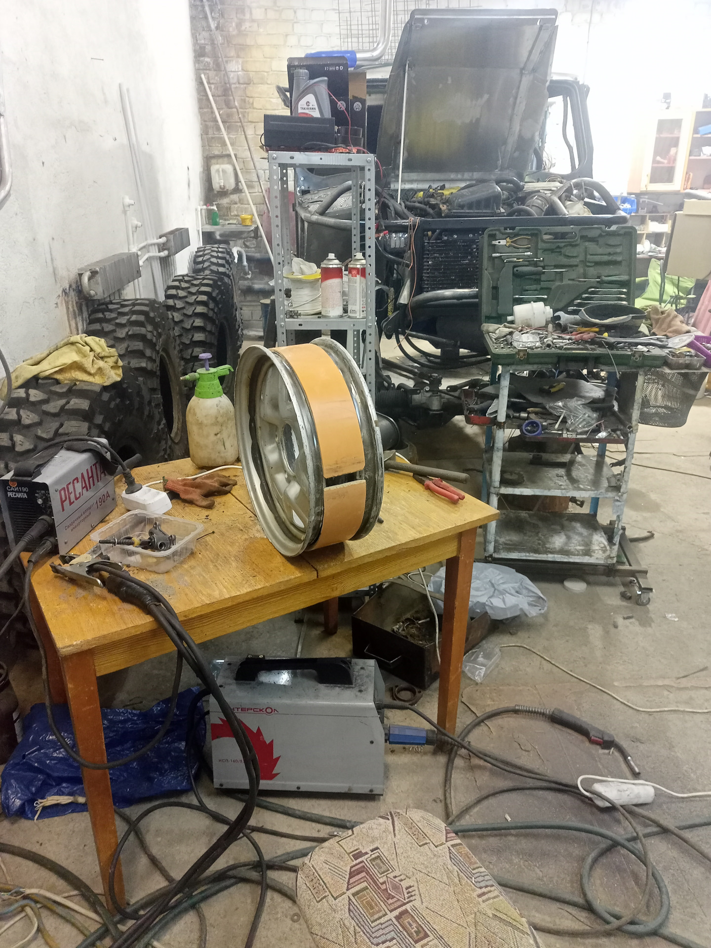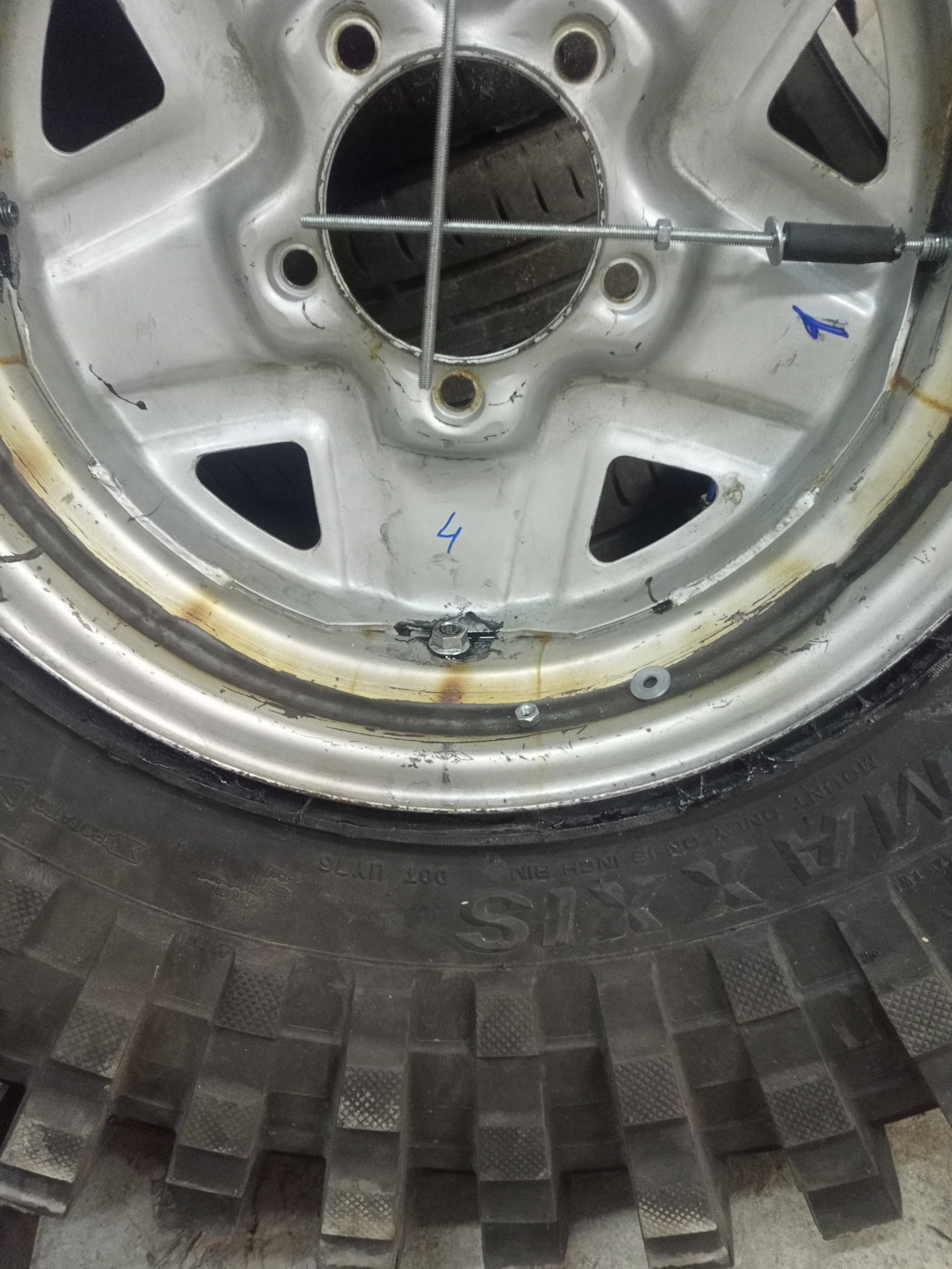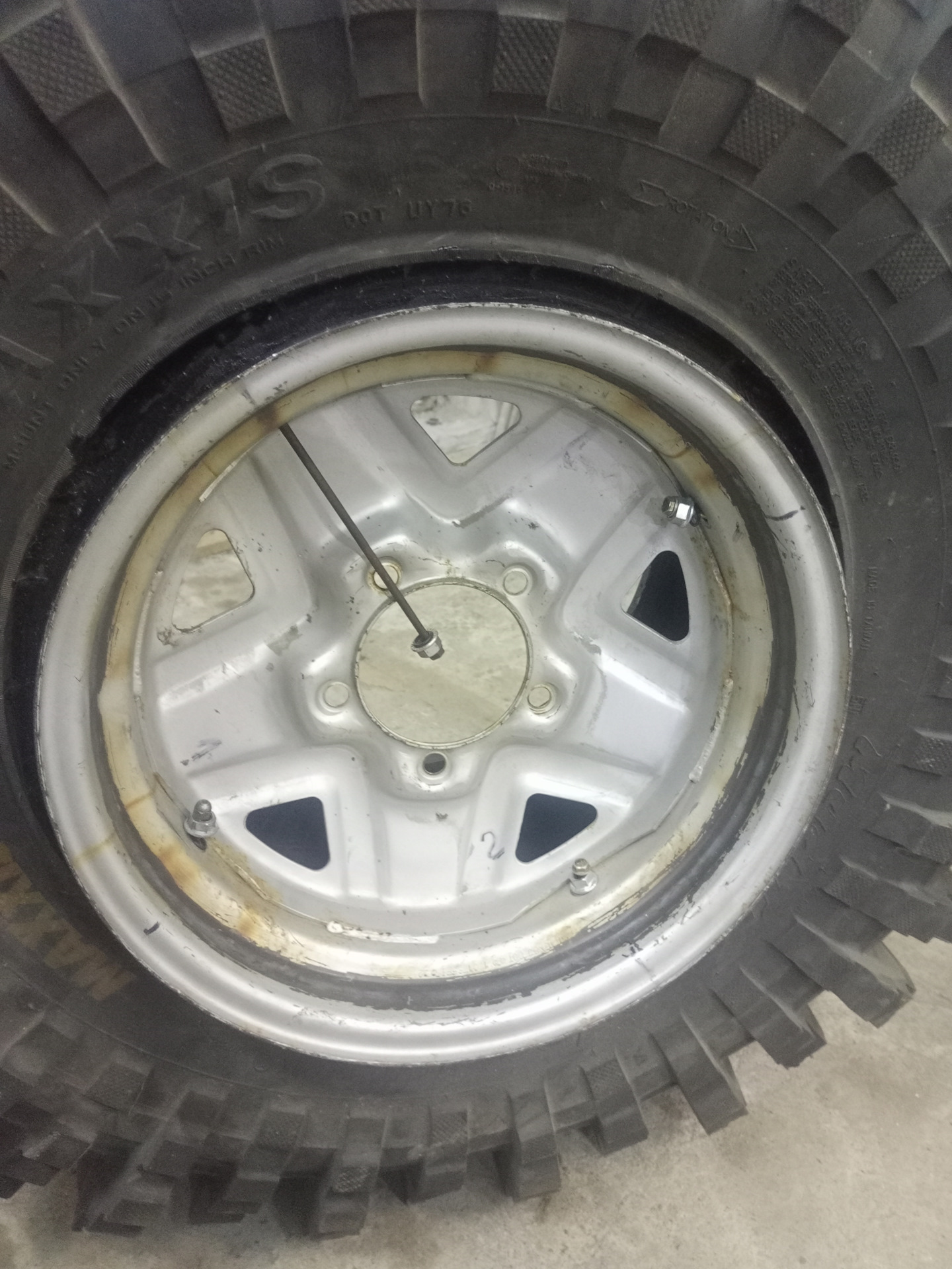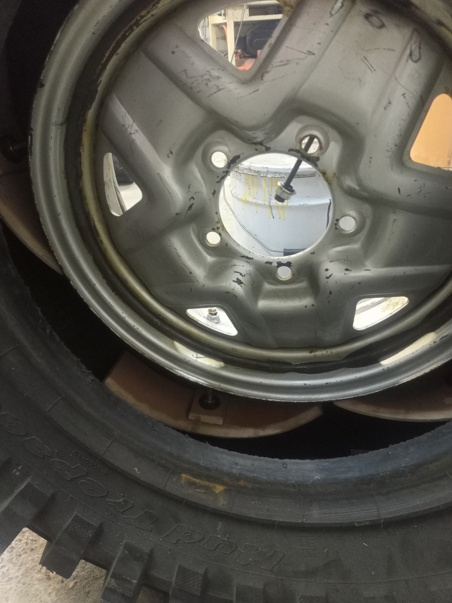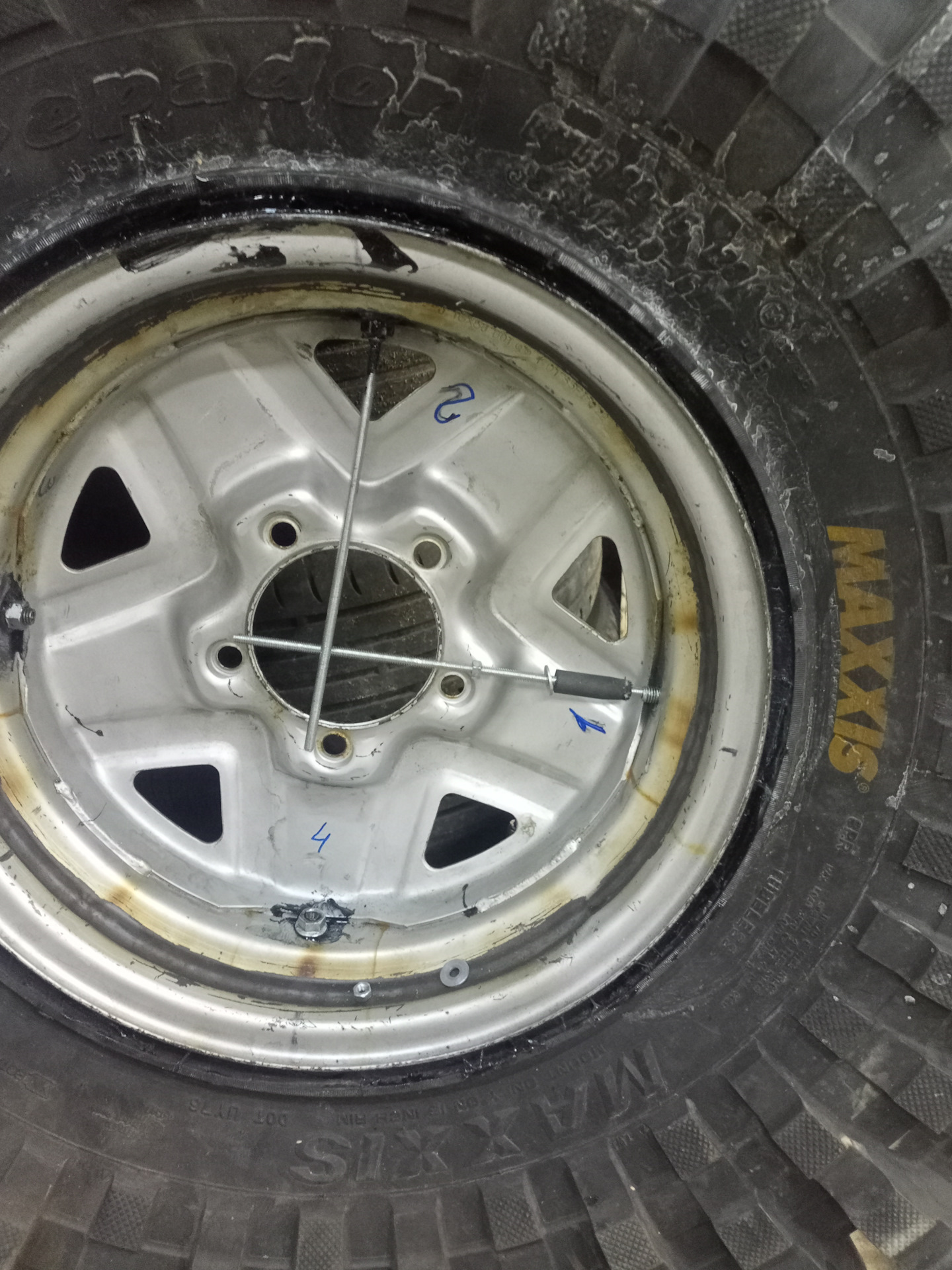По требованиям РАФ ширина резины на вес 1600 не более 295мм., Резать почти нового максимуму не хотелось. Но есть выход — узкие диски. На просторах интернета найден комплект стальных дисков Сузуки, шириной 5".