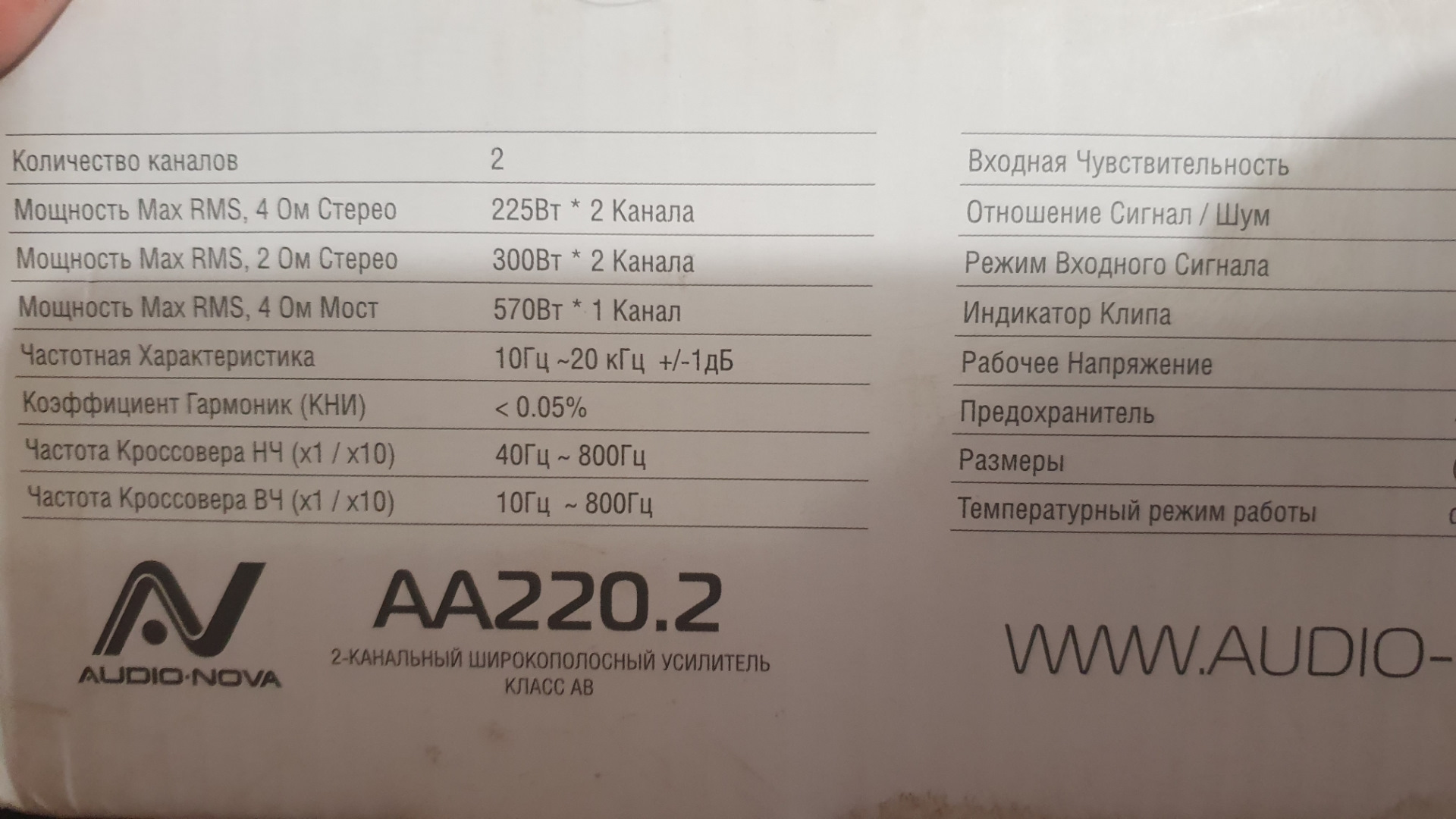 Номинальная мощность RMS в 2 Ом, количество каналов х Вт 2 х 275