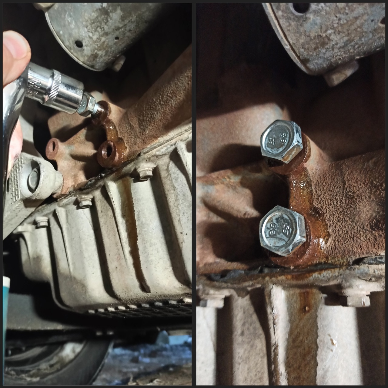 Первым делом WDшкой промоем отверстия в блоке двигателся, куда будет крепиться кронштейн. Затем прогоним резьбу с помощью болтов из комплекта. Всё получилось легко и быстро, думал будет хуже.