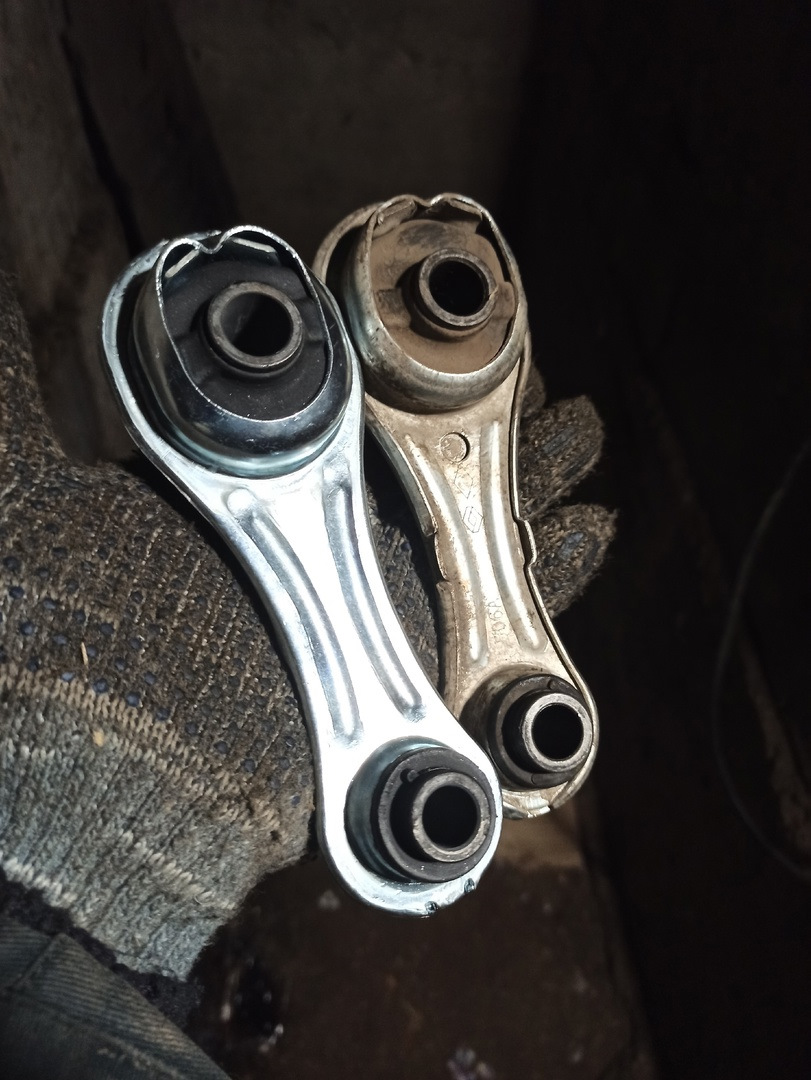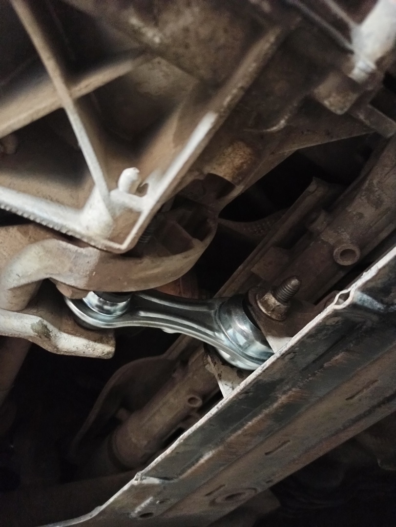 Весной, после замены резонатора с гофрой я менял нижнюю опору. Поэтому сейчас решил ее поставить вперёд, а новую, усиленную от МАВИКО — назад.