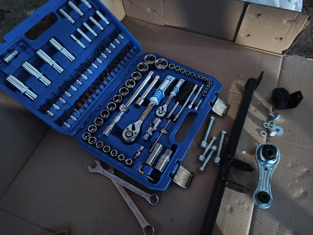 — Гаечные ключи, головки на 17, 19. А если вы, как я будете снимать лонжерон, то еще гаечные ключи на 10, 13, 16, также бита Torx Т40;