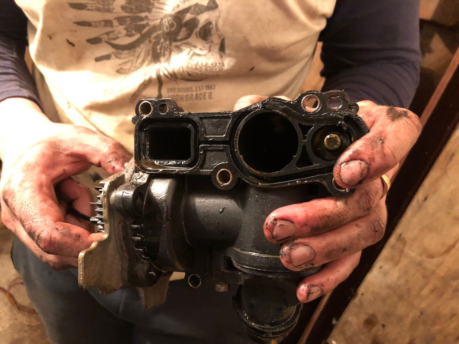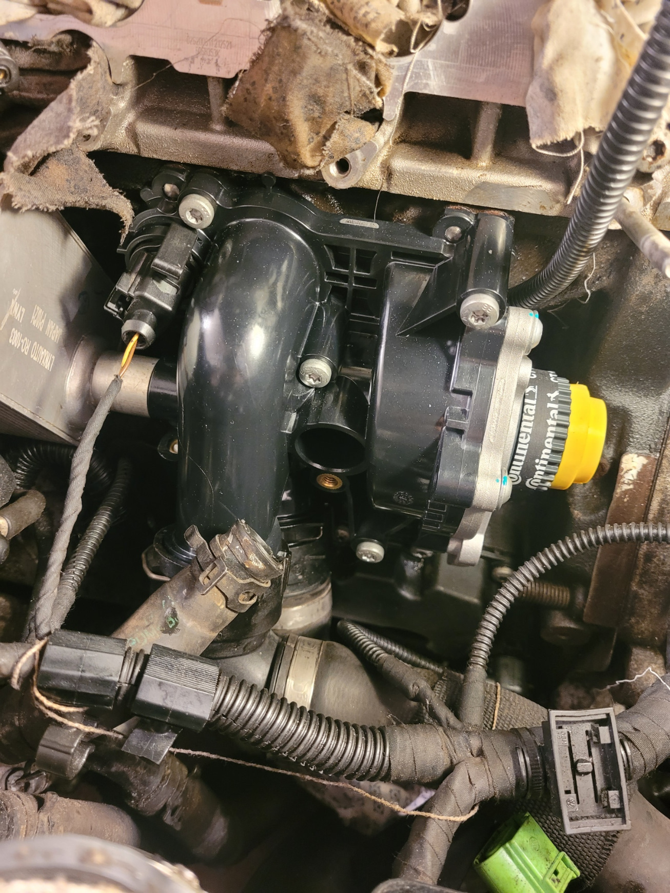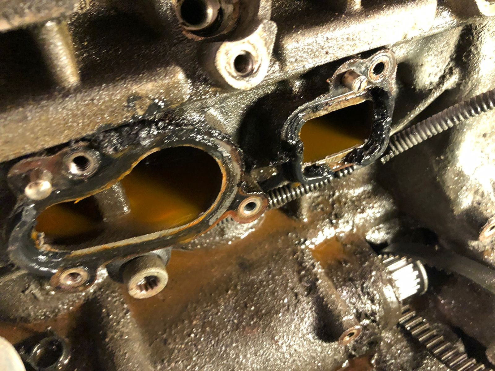 Хотелось бы сказать пару слов о том рукожопом сервисе где до этого производили замену самой помпы, без корпуса у предыдущего хозяина на пробеге 150к, вы просто черти вам обслуживать только "полуторки" нужно но никак не иномарки, предыдущий хозяин отдал хороших денег за замену кстати, только где делал вспомнить не смог уже. В общем эти нелюди может при демонтаже или не знаю как сломали корпус помпы и просто все залепили герметиком, прокладки корпуса помпы к блоку даже небыло и никого из них даже не смутило что там нет куска корпуса! Фото ниже: