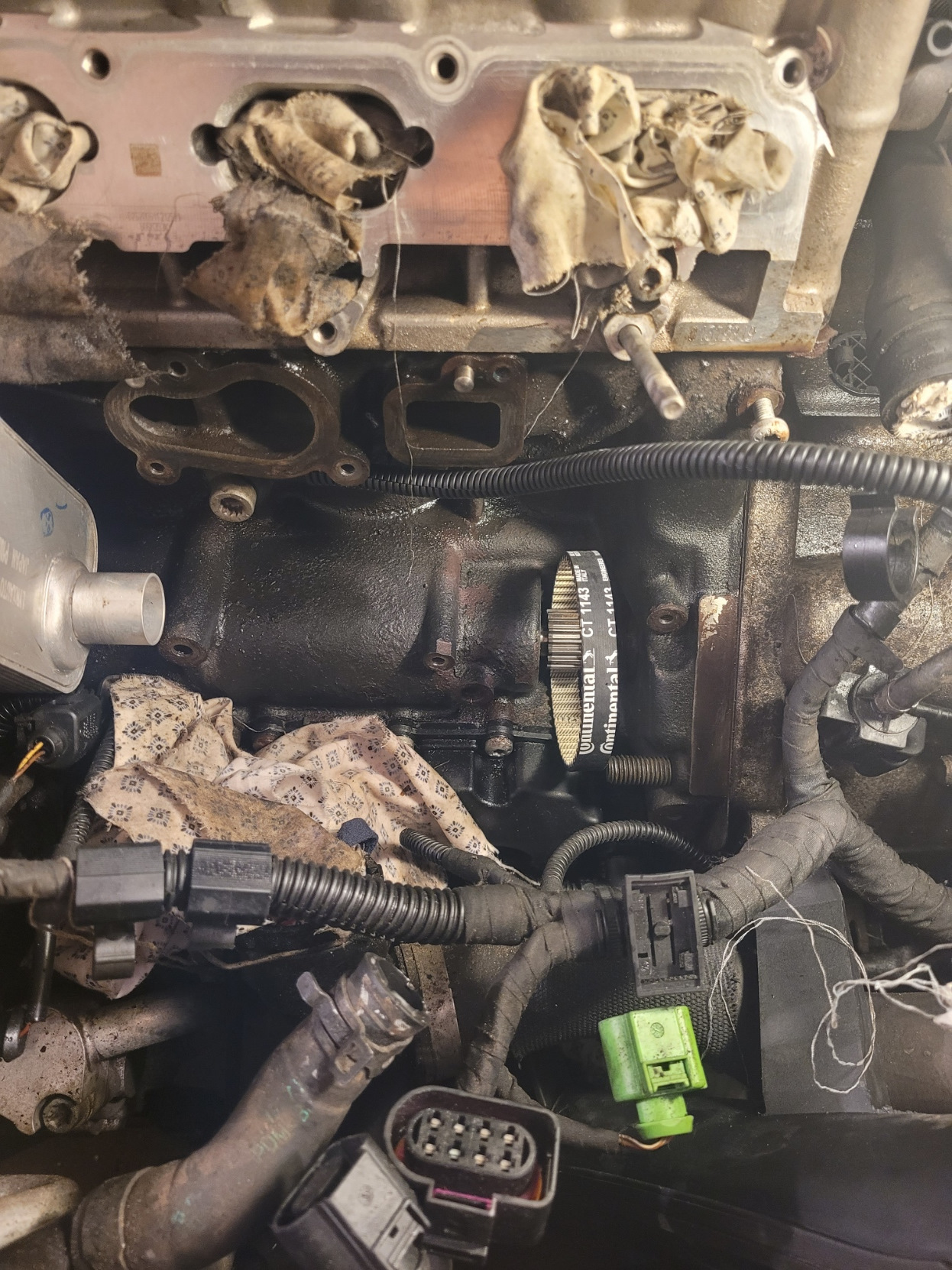 Что ж, вчера заменил сальник и ремень помпы. Руки, конечно, изломал все, пока в этом закутке ковырялся.