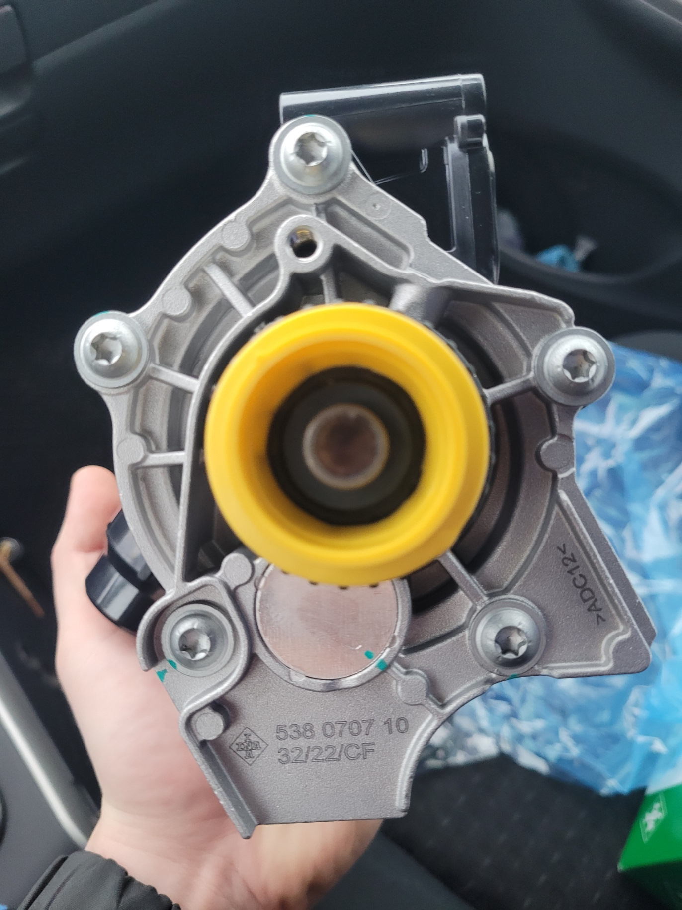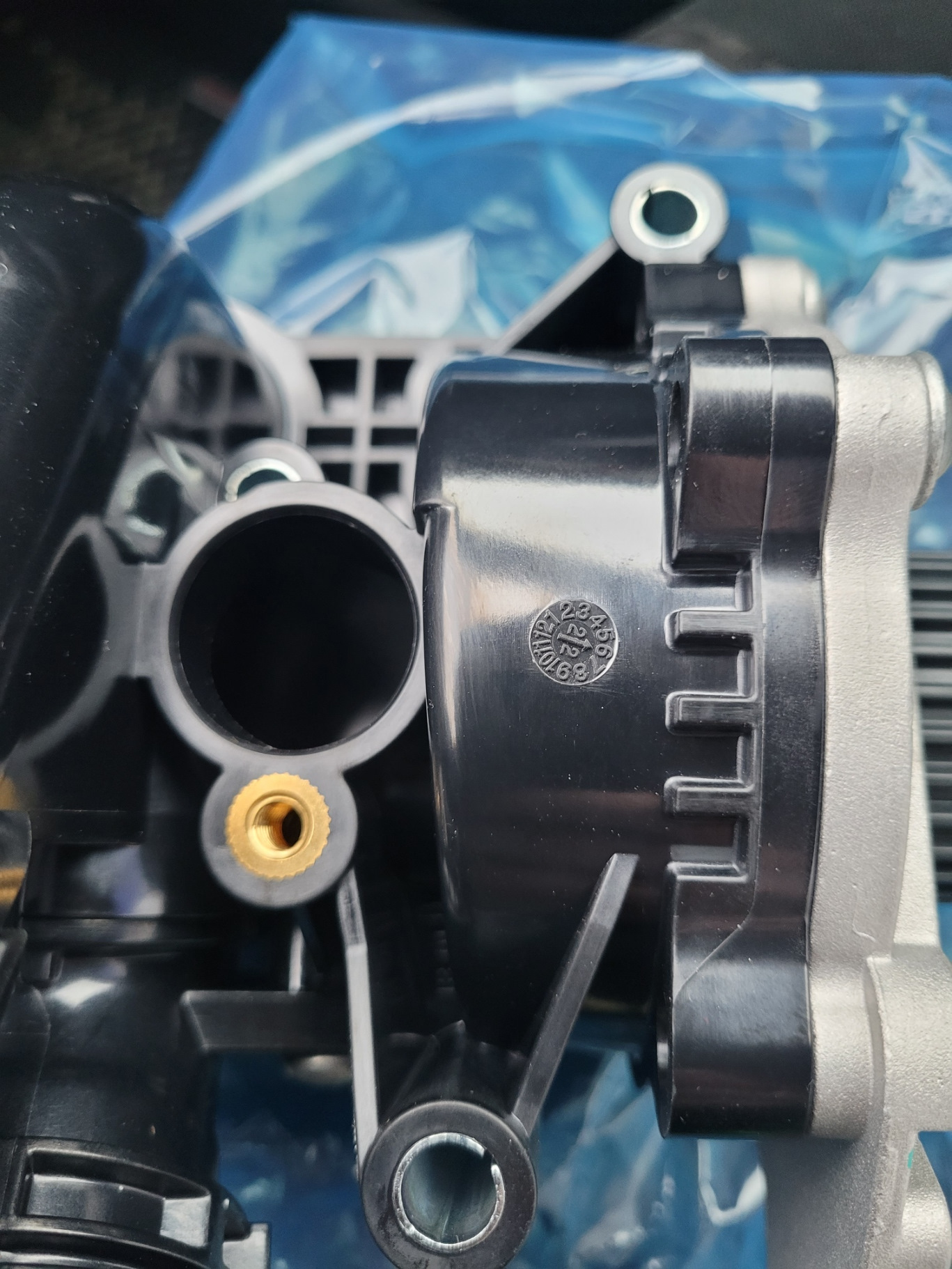 Так же при демонтаже от времени начал отслаиваться данный патрубок купил новый оригинал. При снятии старого, кусок остался в корпусе помпы