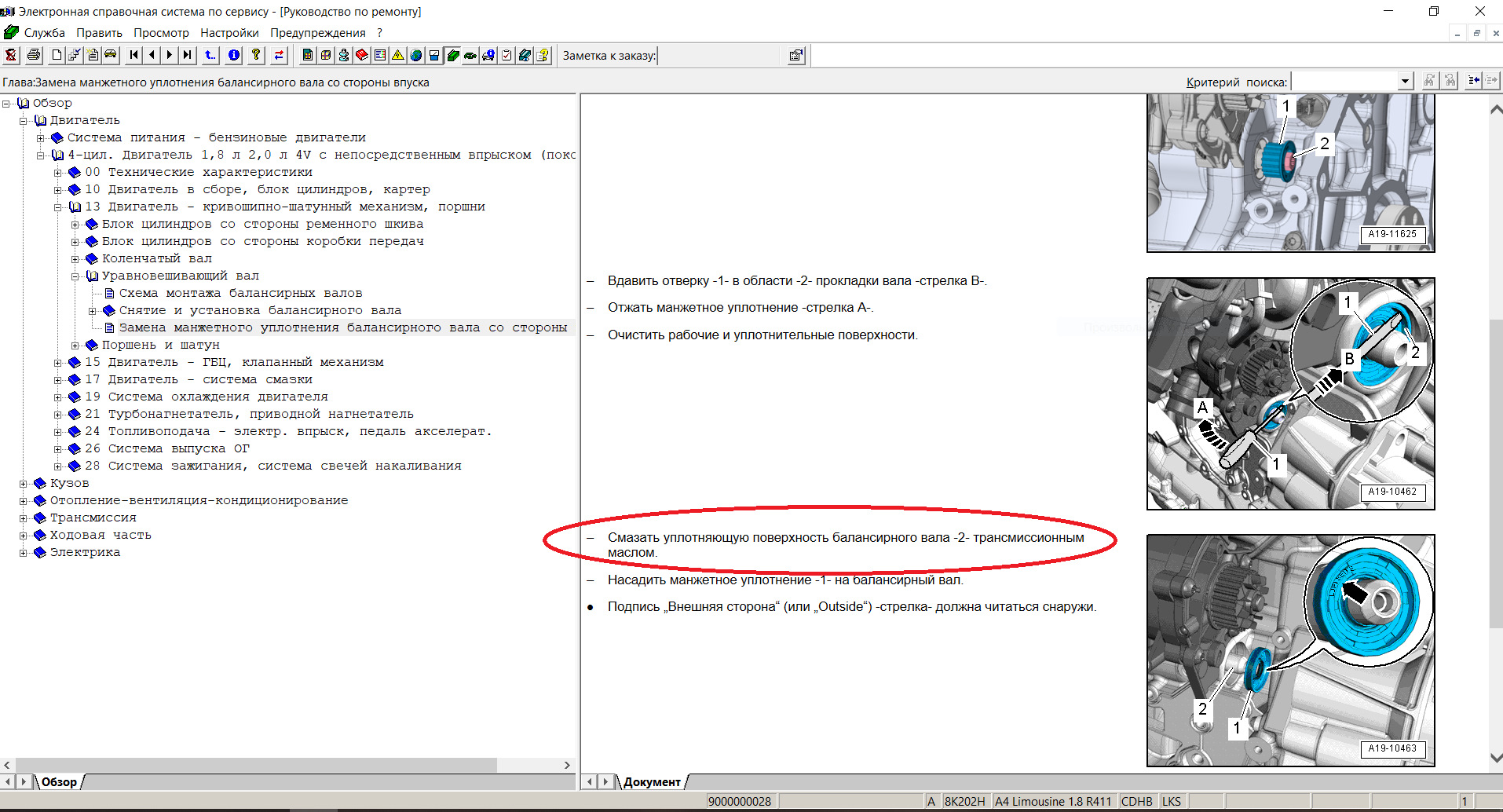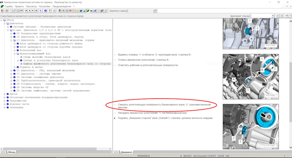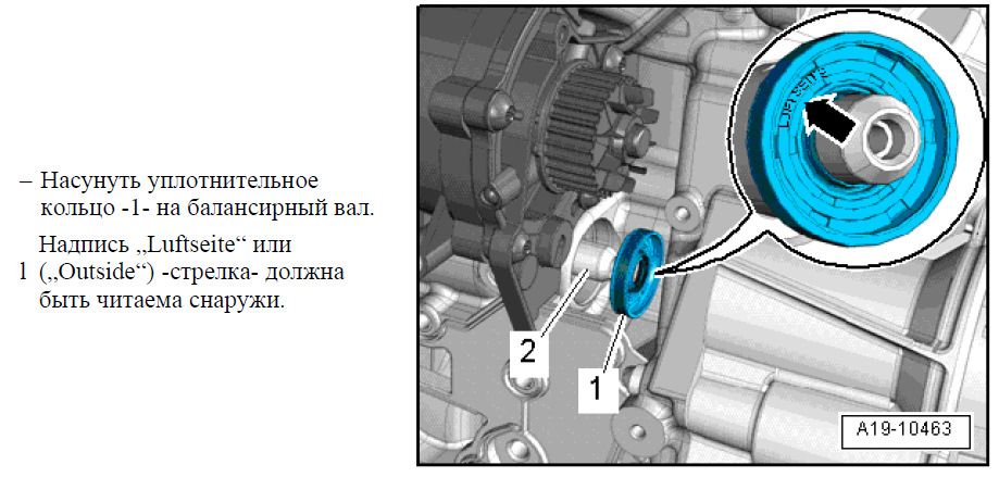 Цитата из ELSA — "Вычистить балансирный вал и поверхность прилегания уплотнительного кольца. Они должны быть обезжирены."