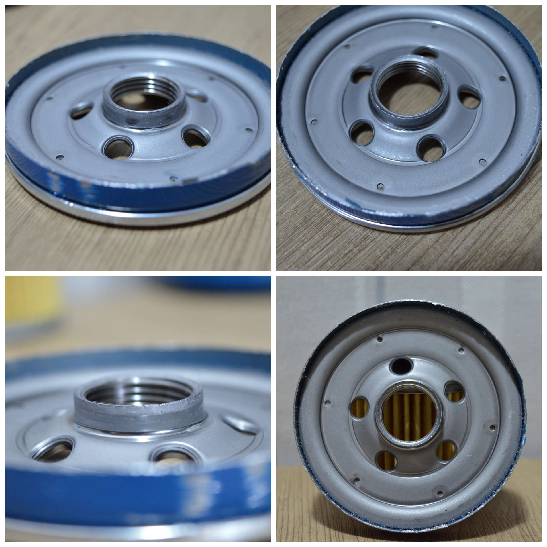 А вот тут уже заметны отличия от Китайских продуктов. Втулка под резьбу сделана хоть и не идеально, но уже лучше чем у многих China фильтров. А как обработаны изнутри отверстия для подачи масла! Моё почтение.