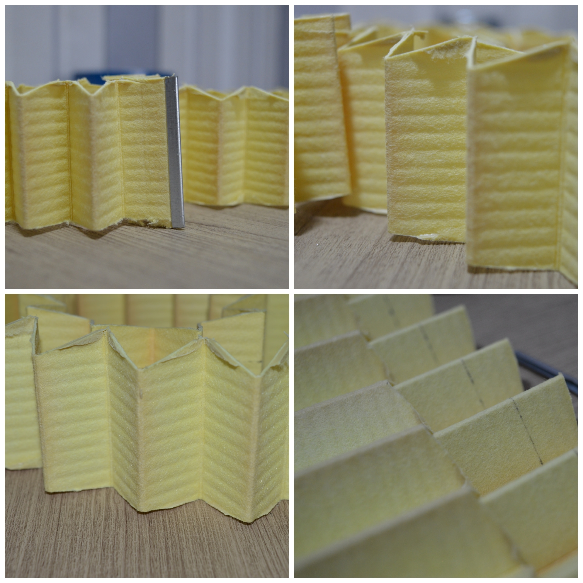 Материал на столько добротный, что режется очень тяжело. Всё склеено на совесть. Видно равномерность укладки шторы.