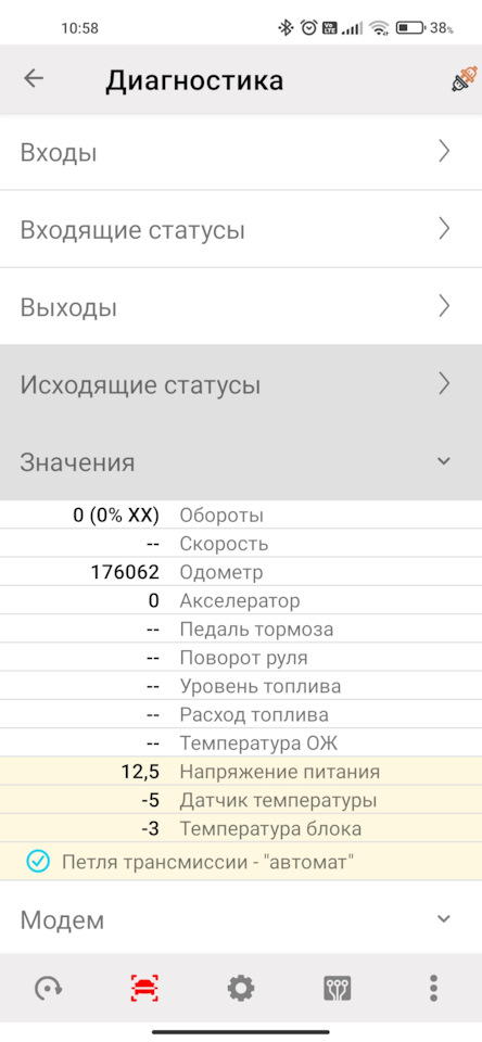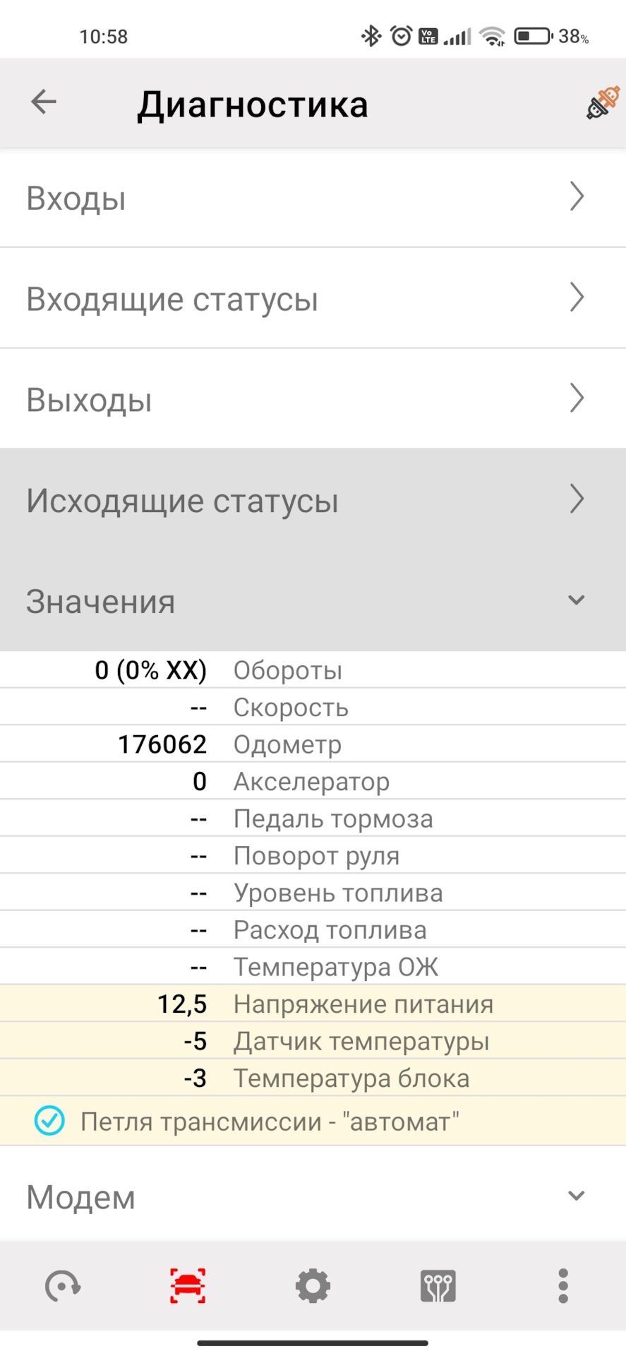 Ну где же всё? Если не читает статус автомобиля по охране. Ну и уровень топлива…не критично, но всё же. Но вот статус штатной охраны! это реально критично.