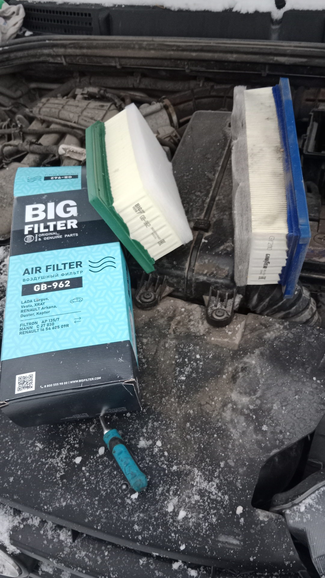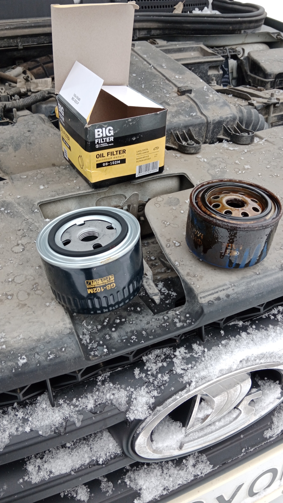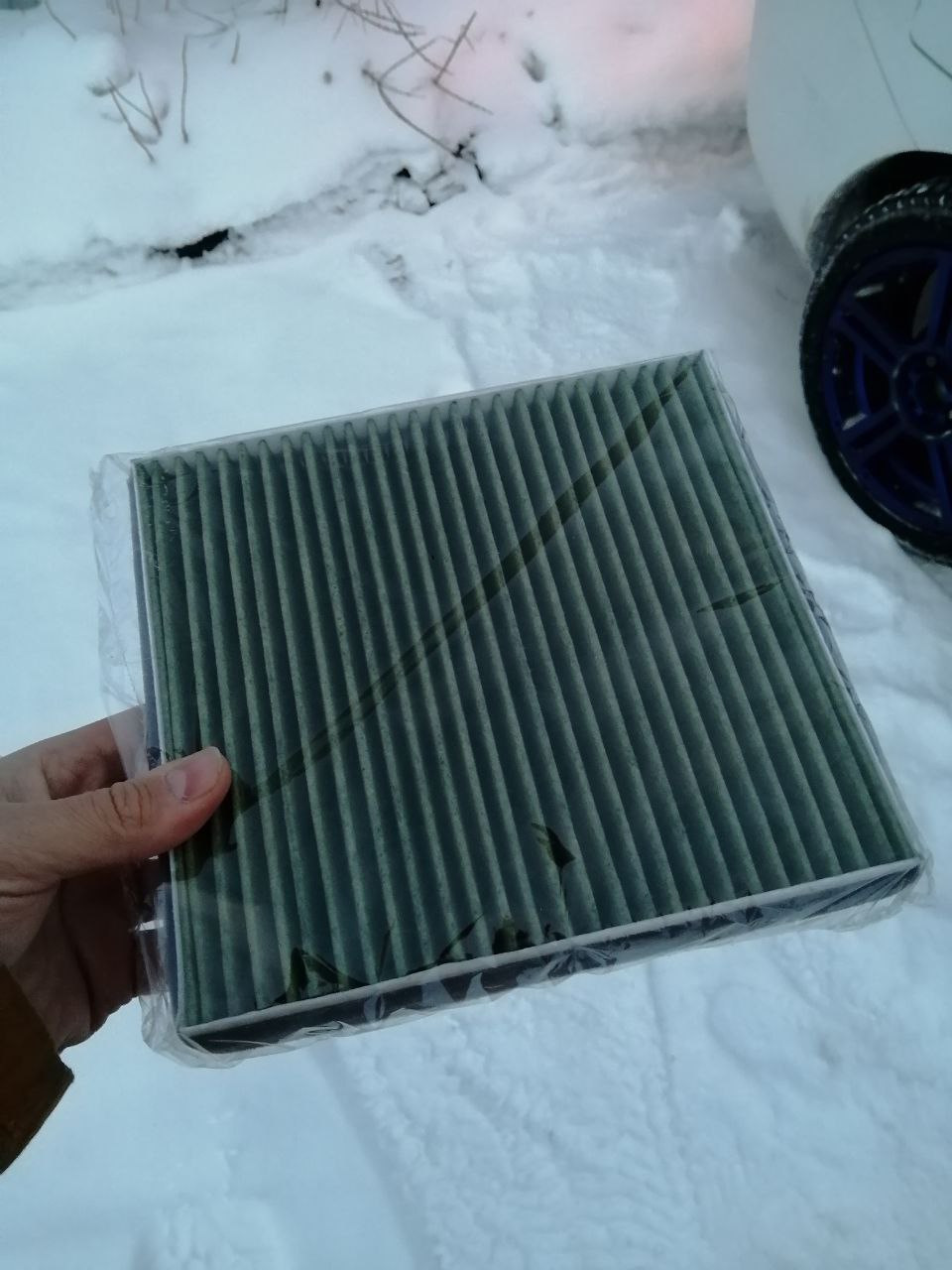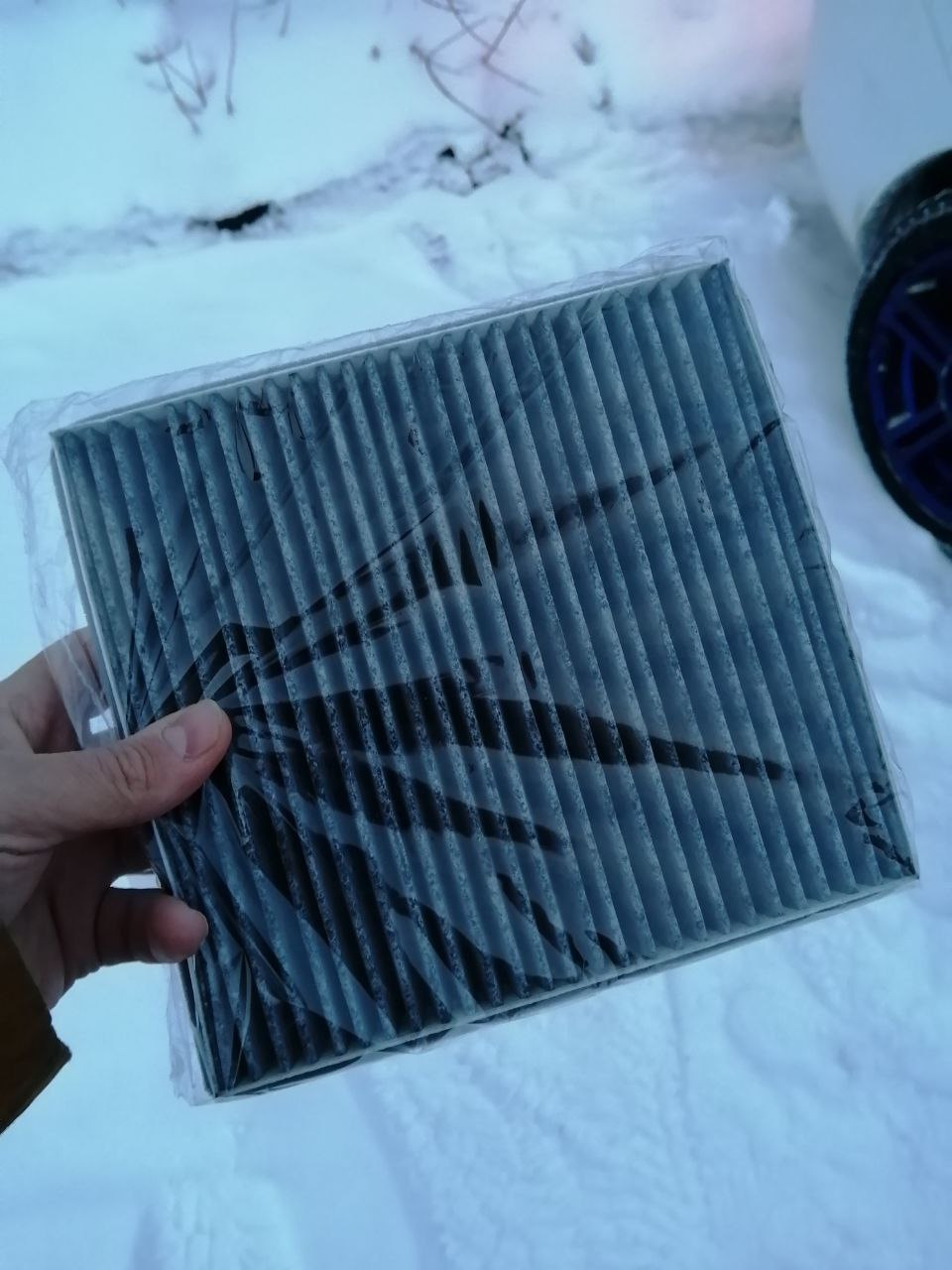 Всех с сочельником! Накопилась небольшая процедура по весточке. Заменить масло с фильтром в двс, воздушный фильтр, салонный фильтр, установить четвертую опору, установить нижнюю решетку в бампер. Итак, фронт работ ясен, приступаем! Гараж у меня есть, но он не утеплён и там у меня мой второй болид, нуждающийся в реанимации, поэтому всё делаю по старинке — на улице.
