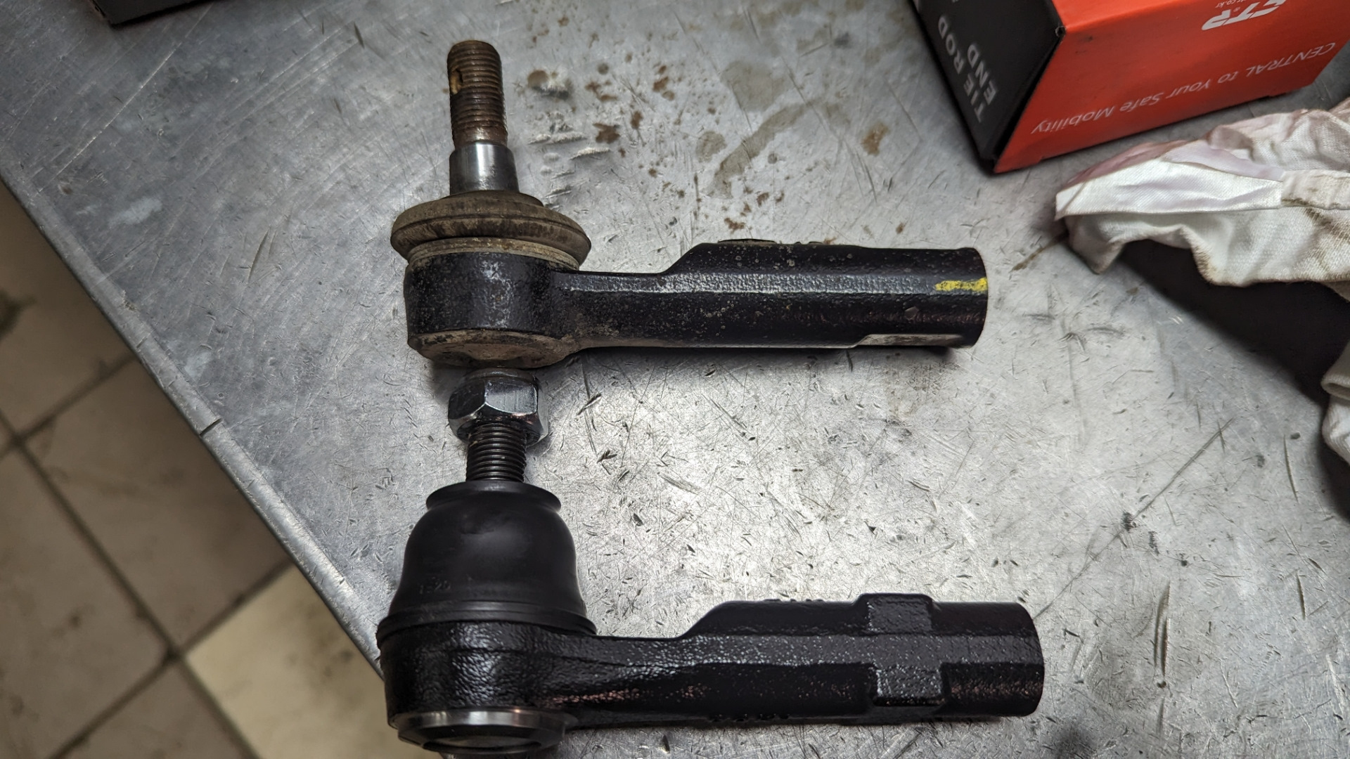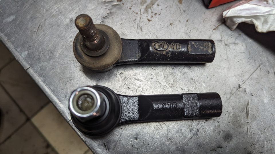 На 61 тысячи пробега поменял рулевые наконечники. Менял в знакомом сервисе, гарантия уже закончилась. Правый рулевой наконечник уже имел значительный люфт, заодно решили сразу заменить и левый. Наконечники поставили корейской фирмы CTR. Цена 1100 руб. за штуку. После замены отрегулировали схождение передних колес. Теперь проезд не ровностей не ощущается на руле.