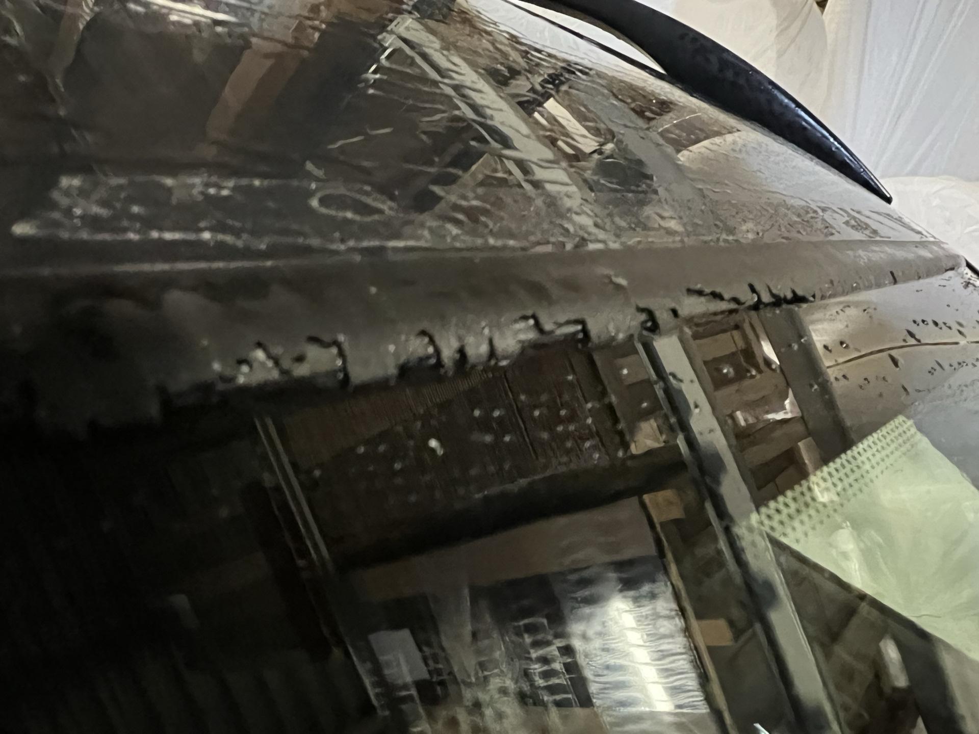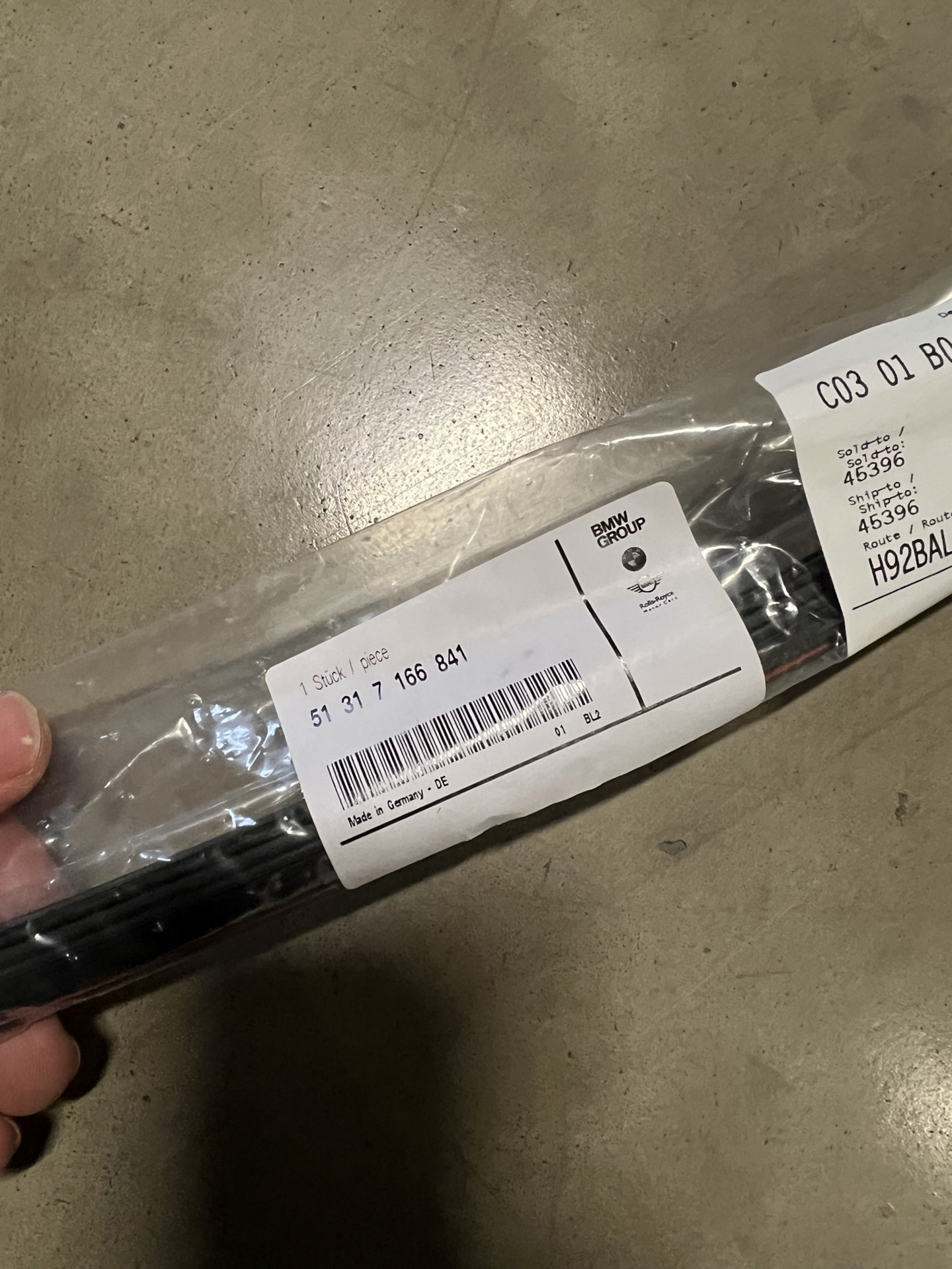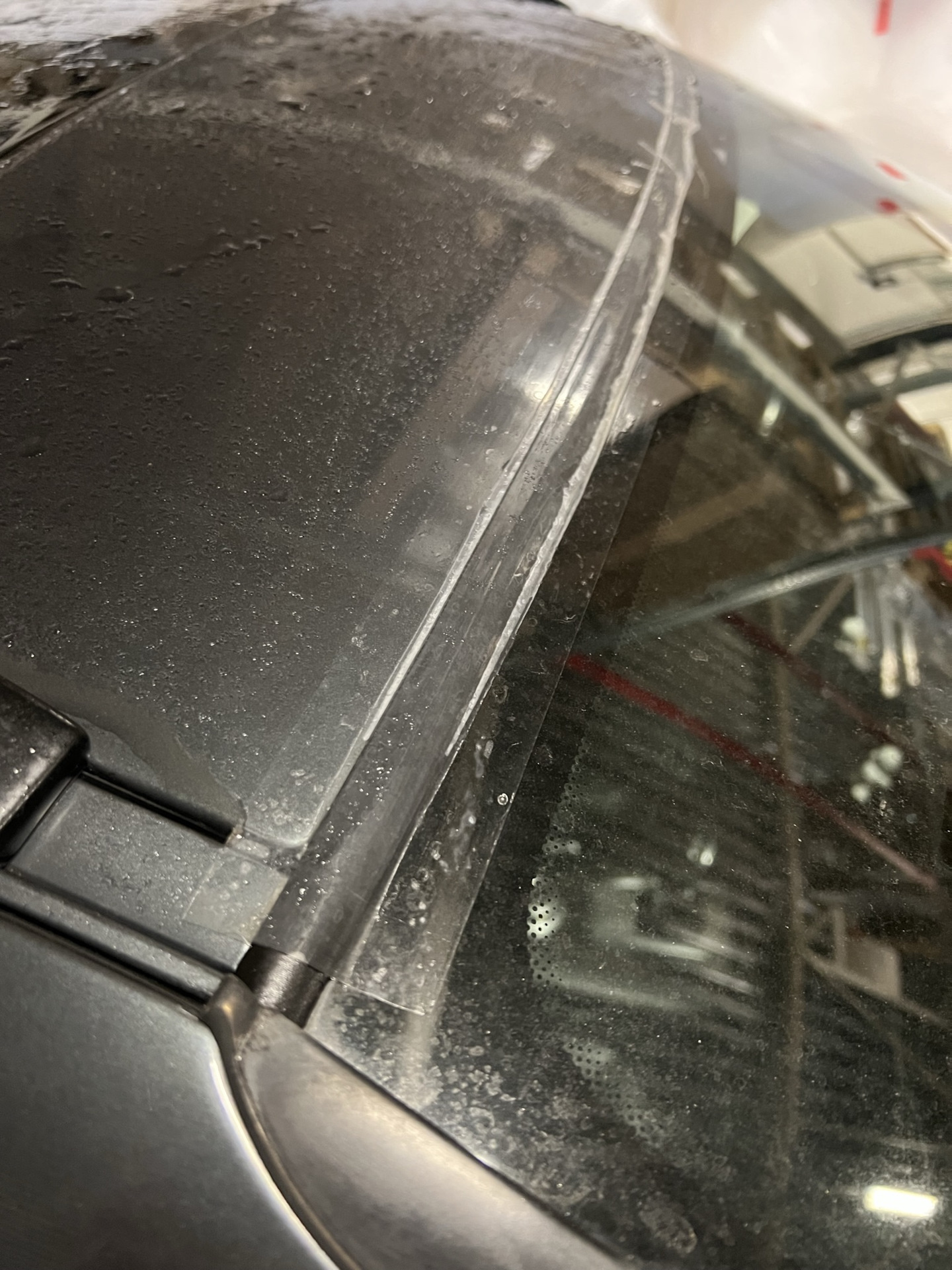 Рассохлась уплотнительная резинка лобового стекла и стала пропускать воду в салон, заметил что правая боковая стойка в верхней части влажная и потихоньку капала вода на коврик, понял что нужна замена. Заказал новую Bmw оригинал, а пока она шла заклеил временно прозрачным скотчем. В замене ничего сложного главное всё хорошо почистить и продуть перед установкой.