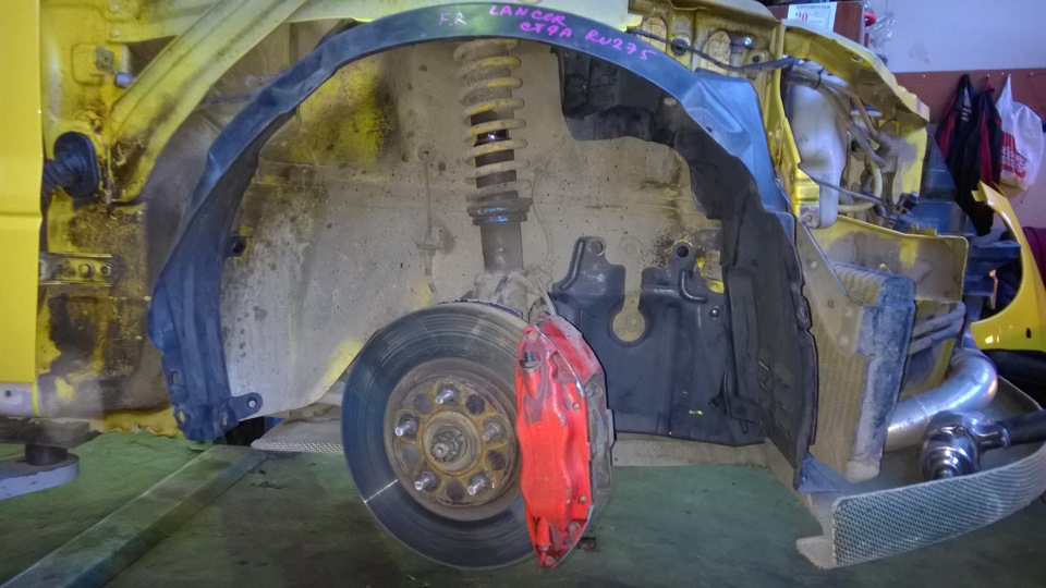 Далее были заменены тормозные диски на Perfomance Friction и колодки Endless CCrG. Выяснилась причина хруста правого привода. С правого внешнего привода слетел пыльник, поэтому ШРУС вышел из строя. Шрус был заменен. Так же окончательно подогнал фары и прикрутил крылья уже насовсем.