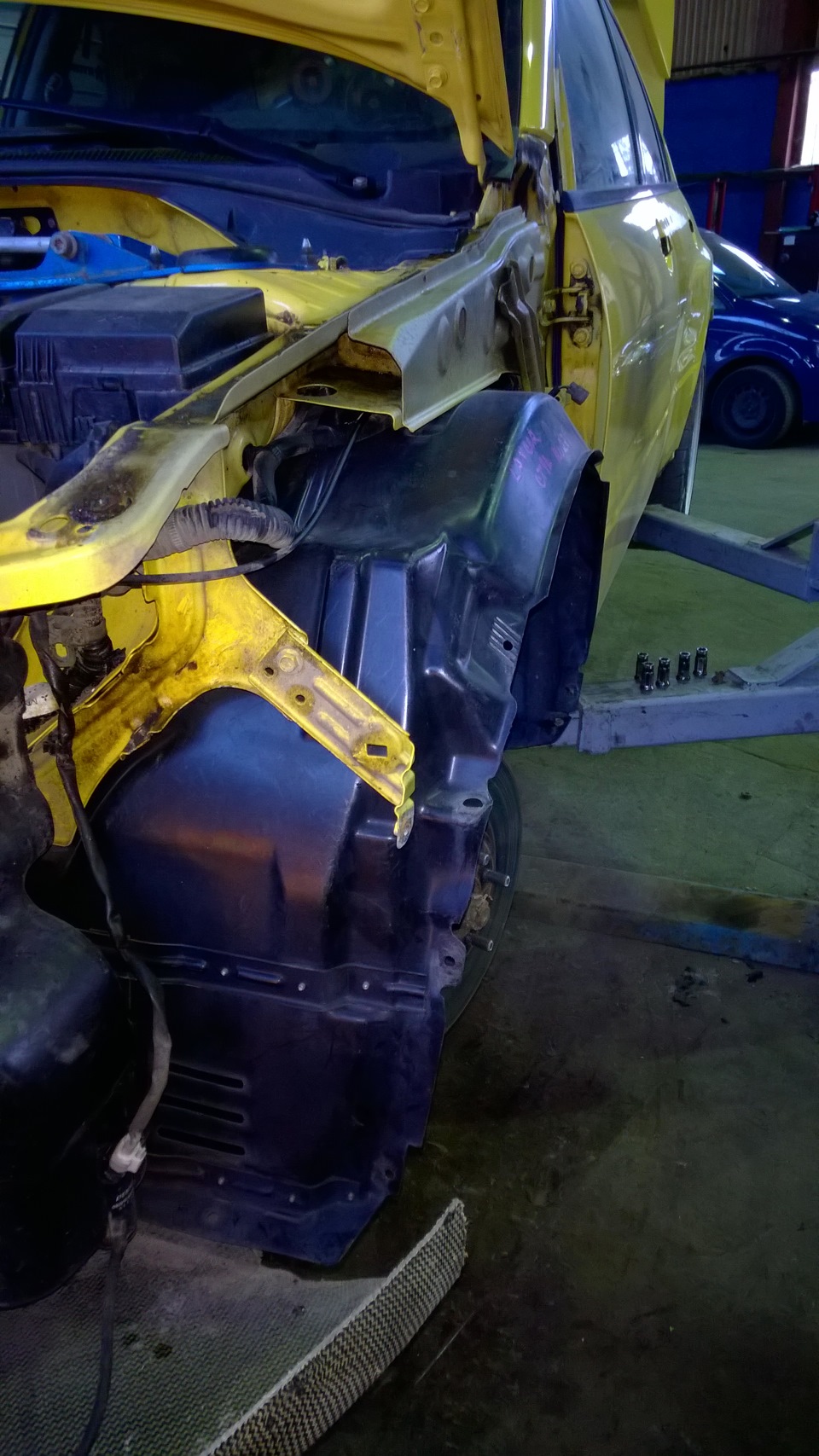 Пятница. Установка новых подкрылков. Окончательная подгонка крыльев. Промазываем все мовилем. Подгоняем и садим крылья. Затем выверяем зазоры и ставим фары. Фары не хотят вставать идеально ровно и одинаково. На этом пятница заканчивается.