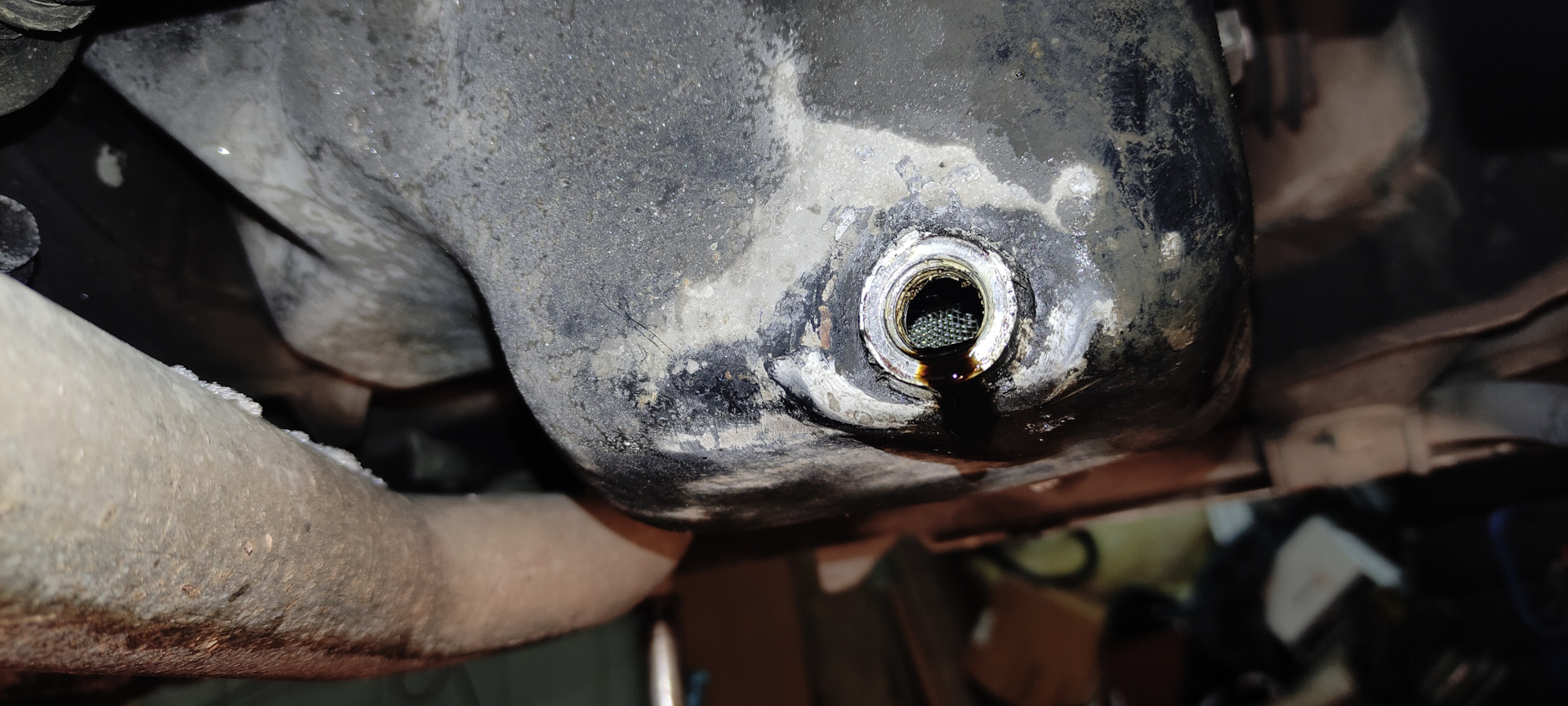На второй день были заменены свечи, масло, масляный фильтр, выкинул синие лампочки отовсюду, синие диодики из габаритов выкинул в первые минуты после покупки машины. Выкинул километры проводов от сабвуфера протянутые в багажник, оставил один хороший на задние динамики. Перебрал передние тормоза, появился накат у машины, теперь она сама не тормозит если сбросить газ. На поддоне двигателя заменил пробку, то что там стояло это ужас. На самом поддоне прекрасная резьба, куда вкрутилась родная пробка, по какой причине там стояло это нечто я не понимаю, могу списать только на недоразвитость того, кто ее туда вкручивал на герметик! Ступица с датчиком в пути, так что надеюсь лампу АБС на панели потушу. Так же есть ошибка по подушке водителя, надеюсь что это шлейф, пока руки туда не добрались. Висела старая ошибка по одной катушке, успешно сбросилась. Подключил отрезанные передние динамики в панели.