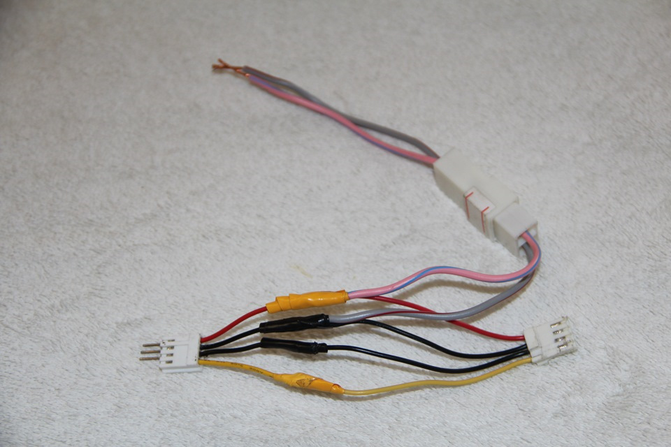 Ответвление я уже понял как — у меня два таких разьема, они так же другими оголенными концами будут к друг другу паятся по цветам и там же сделаю отводы сразу. Готовый вариант выложу позже