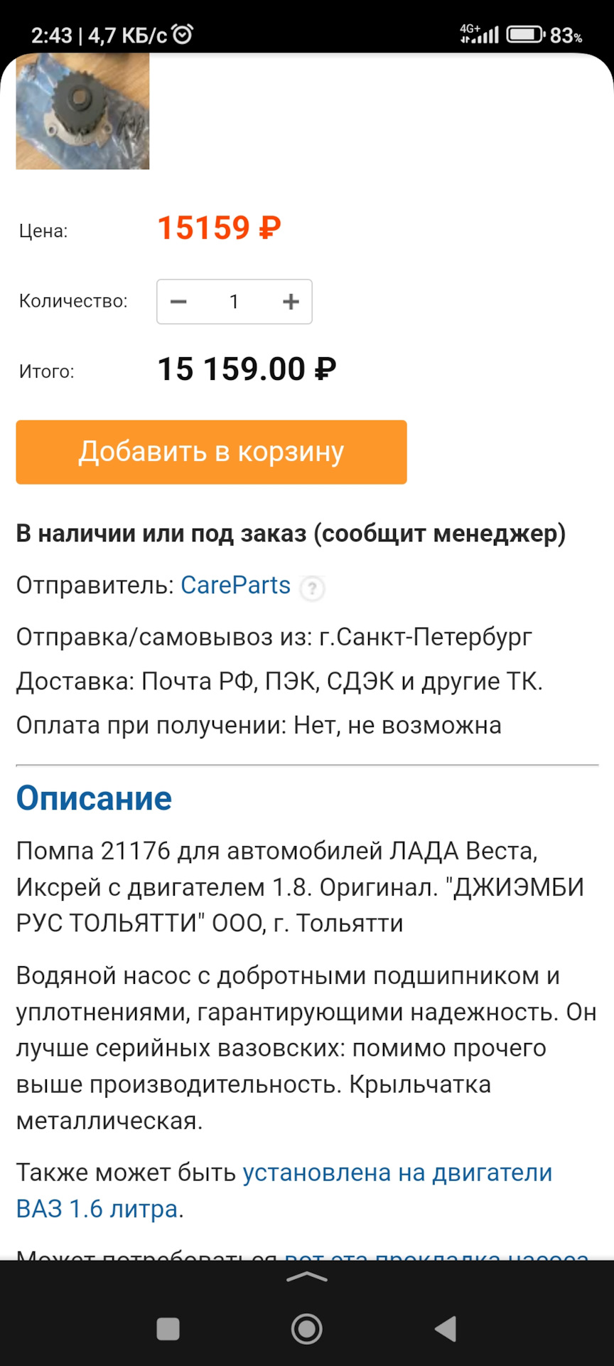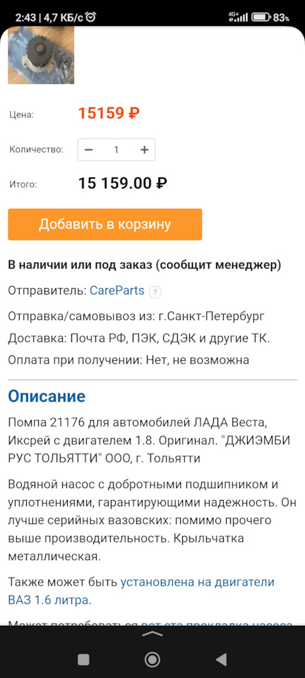 Ценник на помпу как у дорогой иномарки 🤣🤣🤣но мне тут главное ресурс, хочу поставить и не думать