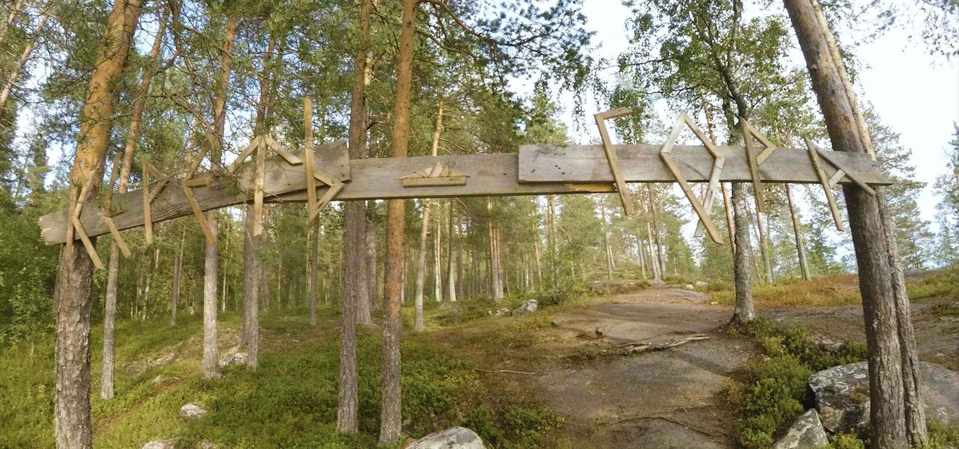 Далее сосновый мыс, где арка из досок с надписью «Кереть – гора», обозначает вход на тропу к смотровой площадке.