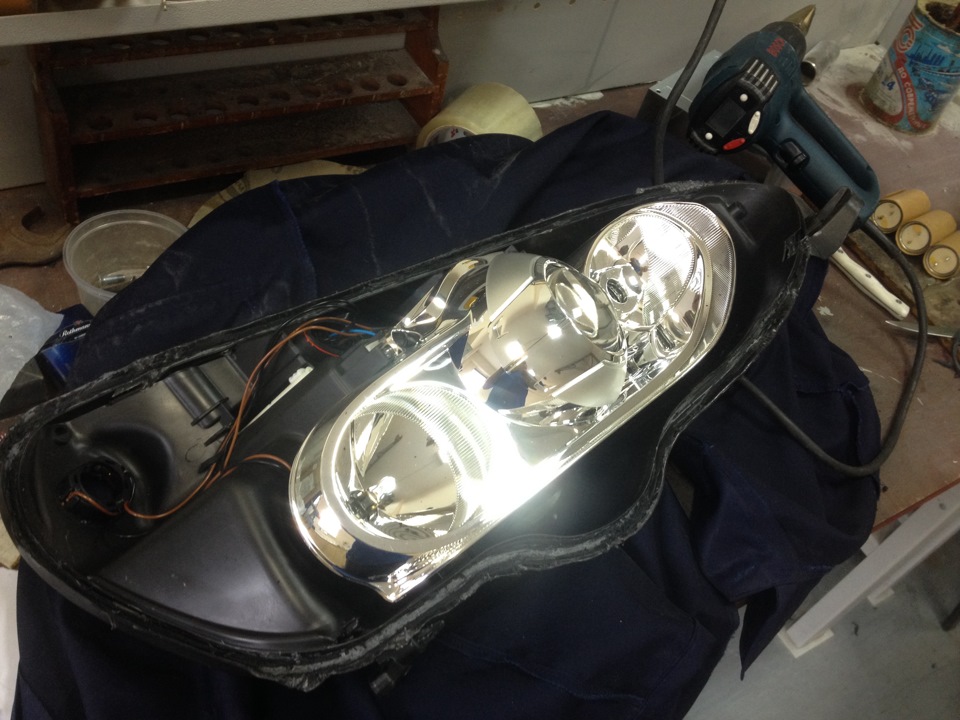 Как результат — фара собрана и сейчас в процессе сушки =))
