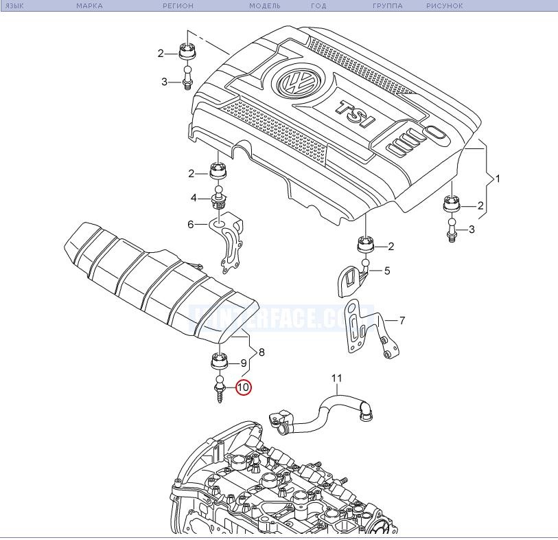 Поэтому для тех кому не нравится как у вас выглядит недоделанность под капотом, в виде экономии на кожухе впускного коллектора, то вам понадобится приобрести позицию №8 (кожух) и позицию №10 (шаровая головка).