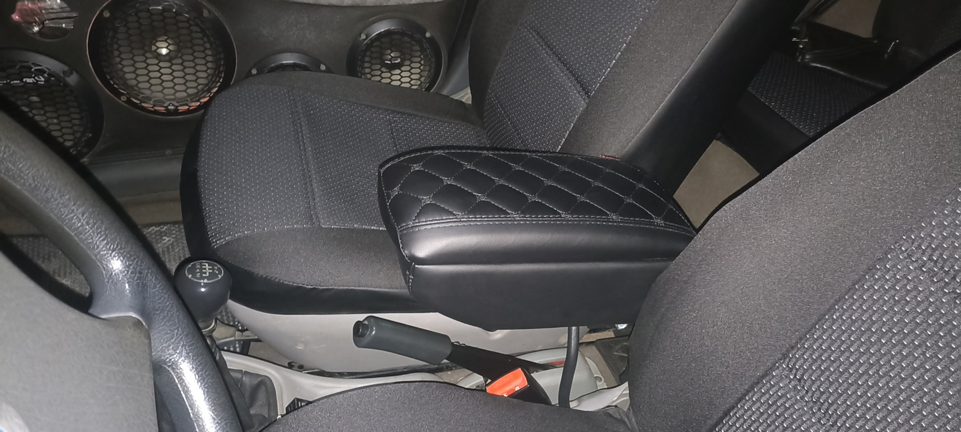 У меня стоит обычный без бардачка . С матерчатой обшивкой.