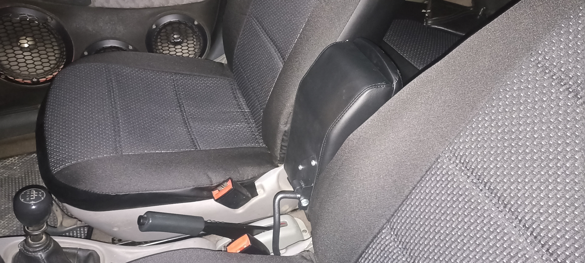 Купил таки себе подлокотник. Сделано так то не плохо, задумка хорошая. Но как по мне так несколько неудобств с ним. Первое он высокий ( ниже не получится, т.к. тогда регулировку сидений не достанешь) второе не помню что еще не понравилось 😂 Установка простая. Снял сиденье занес в гараж. Открутил пластиковую боковину, просверлил отверстие под шплинт крепления чтобы не болталось (можно было просто шплинт срезать). Собрал в обратной последовательности. Удобно что его можно откинуть назад ( так и катаюсь) либо опустить в нормальное положение и катать по трассе.