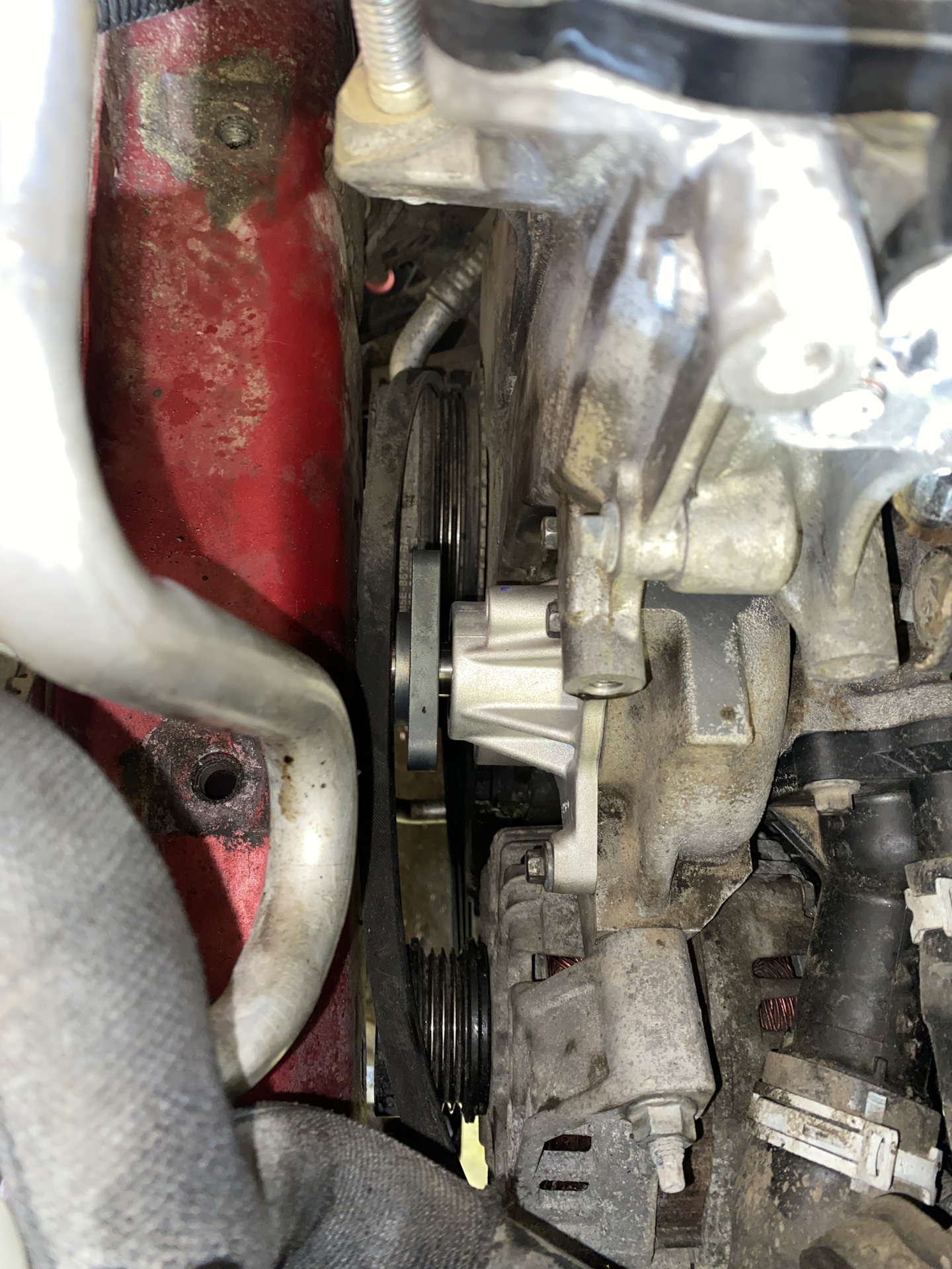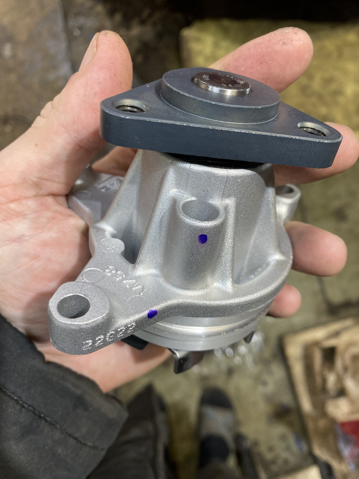 3. Заменил помпу, от нее шел явный шум, на GMB GWMZ58A, шелест почти прекратился, но не до конца. Пробег помпы был около 160000 км
