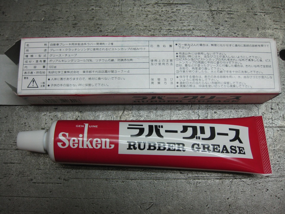 Купил смазку для поршеньков и манжет, так же ее можно использовать и для направляющих. Смазка японская Seinken, номер CF301. Эта же самая смазка идет в тюбике Toyota 08887-01206 но дороже раза в 1,5-2 из-за то того что она оригинал =). Хватит на долго и на много. Так же можно использовать в ГТЦ, ГЦС, РЦС. Цена 350р