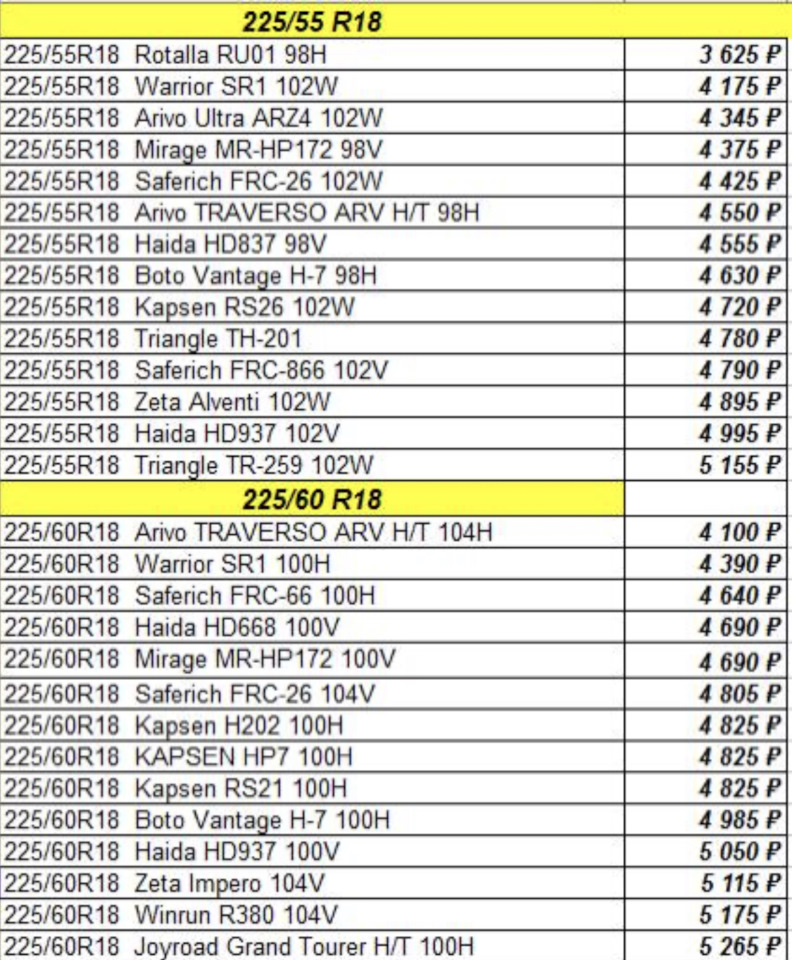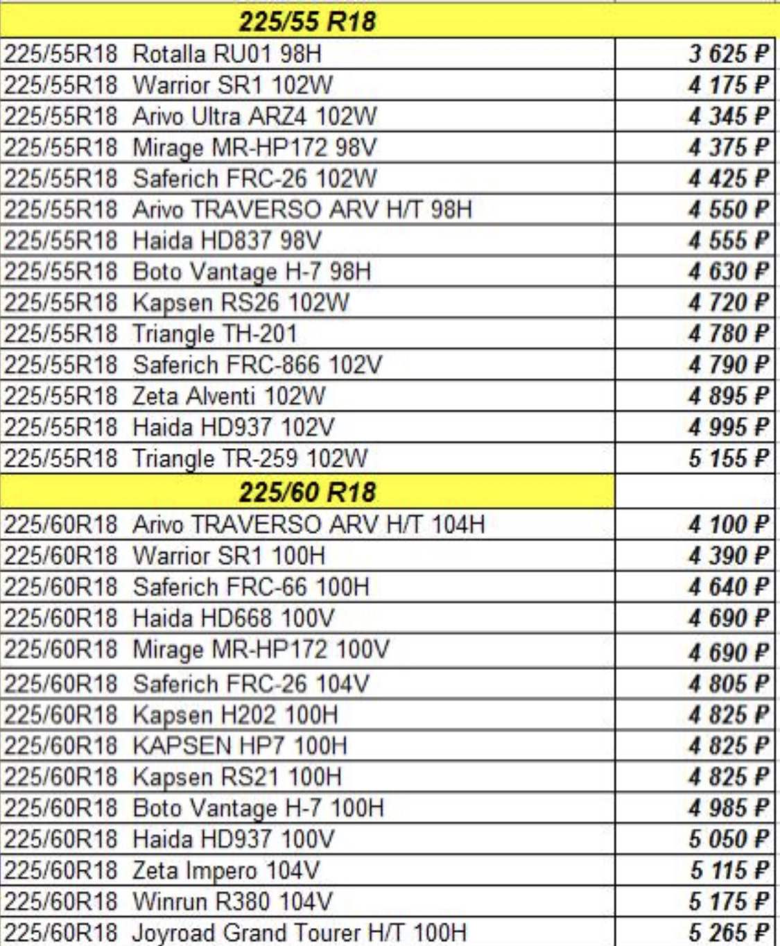 На фото осенний ценник на китайскую резину из группы в телеге.