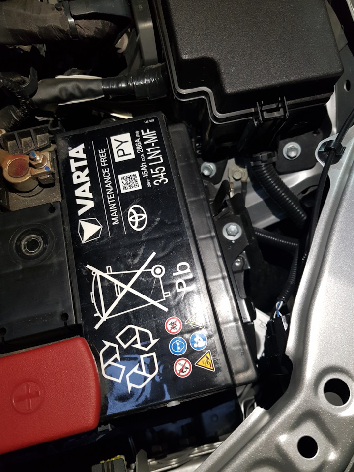 Я свой аккумулятор тоже месяца два назад заменил — машина февраля 2019-го. Аккум был ещё полуживой — около 70% жизни, но начал сыреть вокруг клемм, что говорит о скорой его кончине. И Тойота здесь точно не при чём.