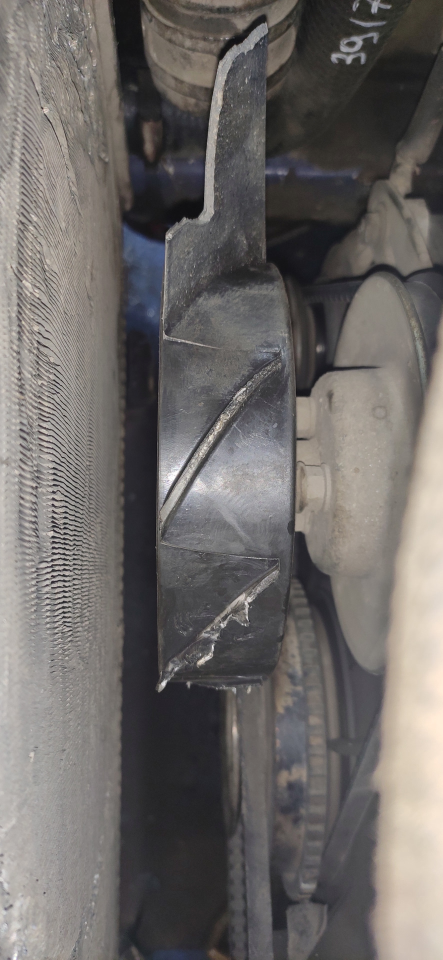 Крыльчатка складывает сетку радиатора, но ни разу его не пробила