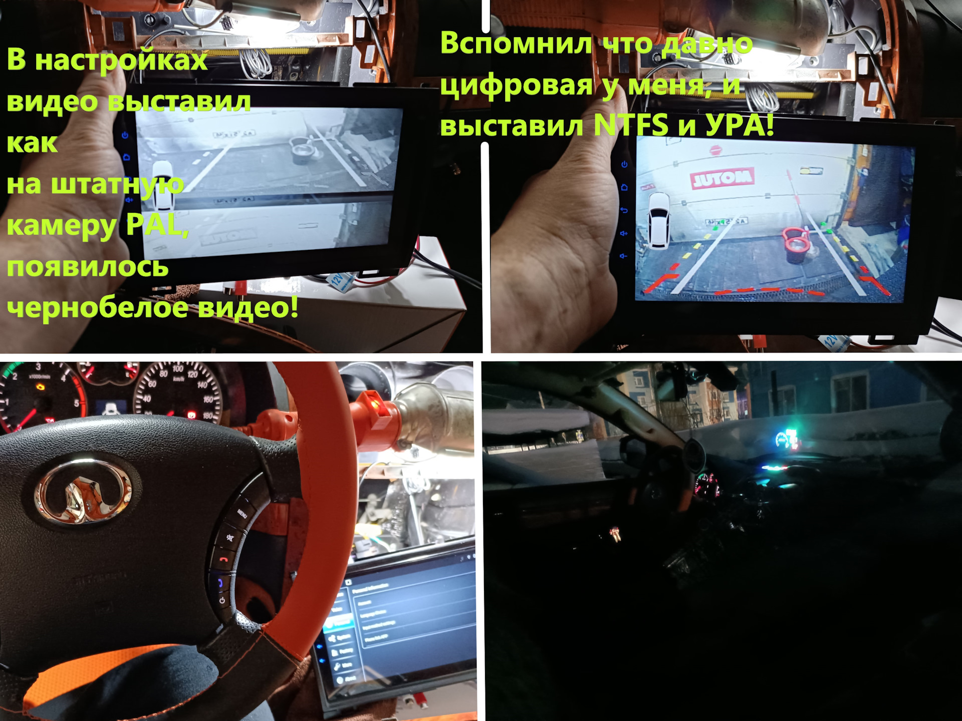 И у нас на экране планшета при включении задней ничего не произошло!:)) Вот засада! Но поразмыслив а для чего енто есть один колокольчик RCA который вставляется в белый разъём, ась?, ласково и нежно втыкаем наш BACK VIDEO IN у меня он перепаян у вас он на косе питания балтается и о боги я верно угадал и CAR BACK задний ход! и камера заднего вида включилась и заморгала! Уря!Дальше дело техники, идем в настройки планшета там из стандартных втыкаем как штатная камера PAL, Ёхуууу! теперь наше видео стоит и оно черно белое! Вспоминаю, что у меня давно цифровая камера с динамическими линиями и датчиком гироскопа! Иду в настройки и перевожу камеру в NTFS и уря Советский цирк умеет делать чудеса! Короче все играет только дуй! Кнопки руля благо тут неперепутаны в косе питания провода как когда то в Македо мы с Тохой методом тыка их меняли пока не спалили кнопки:)) В Junsun все отлично тут мы сразу идем в настройки руля и обучаем присваивая каждой кнопке нужное значение так как видем что кнопки светят, а значит все ГУД КАРЛ! И кстати установив поехал домой и проверил пишут в сон уходит, нет ток ключ вынул она бац и потухла! Но сон в настройках отключил совсем!Салон Студика снова преобразился и в лучшую сторону я вам скажу! И деньги с ДР ушли на покупку данного преображения подаренных мне 23 января! Всё как всегда вовремя!:))В магнитоле куча настроек в эквалайзере прям мощно звук меняется крутой эквалайзер, порадовал!Купив симку, вставив в модем 4G магнитолы обновил систему и не только! Потом увидел 4 бесплатные темы в UI 5.0, по игрался с ними, и кучу платных выбрал оранжевую шкурку, увы купить невозможно там PAY PAL, а Россия в нем заблокирована. Но продавец за 5 звез отзыва на Али обещал помочь, сегодня скинул ему его 5 звезд. Если не поможет то снесу и поставлю Лаунчер AGAMA!Установил с Гугл Плей прогу Пад TV теперь и телек смотрю в бардачке видно мини ВЕМ2 с али, он в каком то выпуске закупок Хахаряшек с али в конце БЖ имеется ссылкой. Есть прога меняющая подсветку кнопок магнитолы есть каравто это по Bluetooth 5.0 передает изображение экрана вашего лёлё на майфуна! Еще установил Индекс навигатор и снес Иго.Видео смотреть на таком экране одно удовольствие! Качаем доунлоуд мастером с Ютюба кучу разных видео и смотрим балдеем с флешки Кстати тут и Ютюб есть можно сразу с него но концертами!Камера заднего вида с динамическими линиями и датчиком гироскопа имеет крутое изображение на данной магнитоле! По проводке напоминаю она припаяна к штатным проводам!
