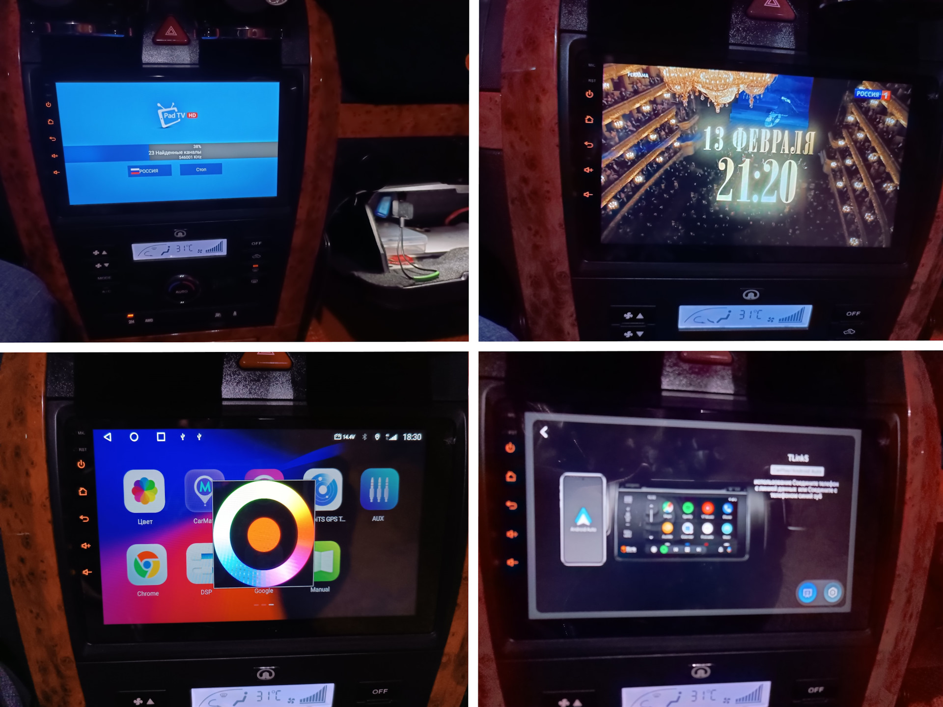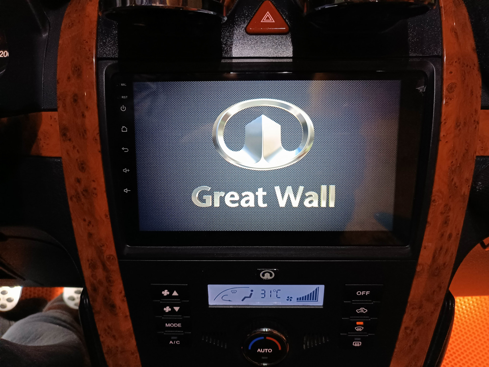 А вот с установкой ЛОГО авто я помучался изрядно, раз по 10 бегал к авто, то угадывал формат файла, то потом сторону как он должен быть и все BMP формат в видео делают тут он в углу экрана, а это каждый раз в настройках заводских с паролем 123456 и с применением после установки и перезагрузкой благо данная магнитола с трея жмем кнопку и она уходит в легкую не надо как люди иголкой в ресет тыкать. Короче открываем Ппроводник, в корне папка LOGO, там скачал 2 файла PNG с изображением Андроида, дома подогнал и размер и название уже точь такое и формат как уних PNG и с правым поворотом их сделал в стареньком любимом мне фоторедакторе ACDSee v5.0, закинул в туже папку обратно уже свои!И затем еще применил в настройках, перегрузи и ВУАЛЯ! Картинку эту я нашел в Яндексе по поисковому запросу Лого Great Wall. А вот анимацию как поставить я так и не разобрался.Ночью это дело выглядит так! Вообще вещь афигенная! Там можно делить экран на две части, можно голосовое управление, я когда то о нем мечтал обучать его под себя как интеллект, надо разобраться каковы его возможности банально просто или обучаемый, датчики шин можно их выше вы видели по USB подключать, также за карплей писал трансляция лёлё на экране планшета, в общем вещь крутая в авто!