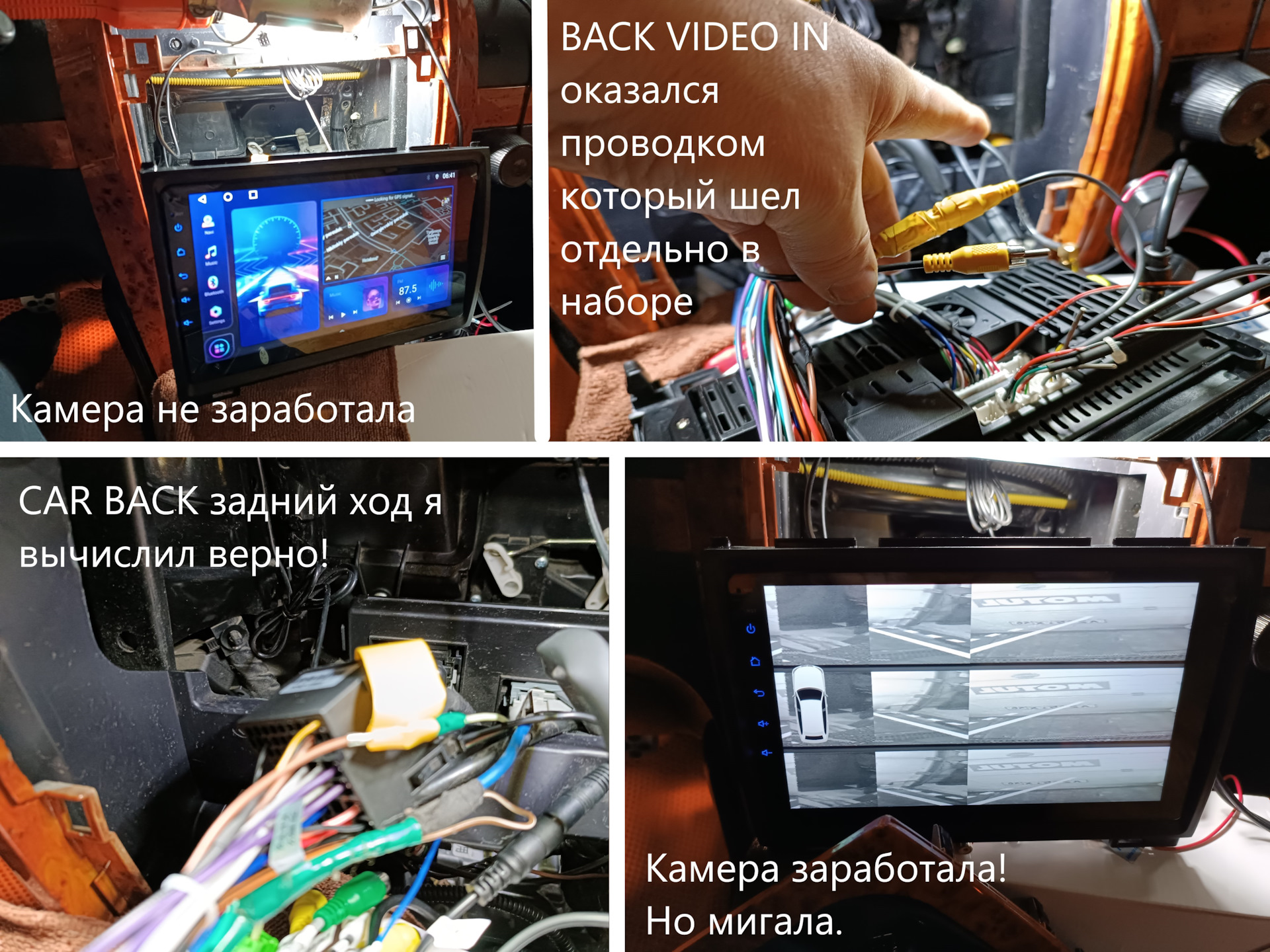 На современных магнитолах для камер отдельное гнездо если читал эту статью. далее карбек задний ход если все это проделано и режимы меняли как ты пишешь камер тогда бог его знает киньте напрямую новую и в отдельных ход её.