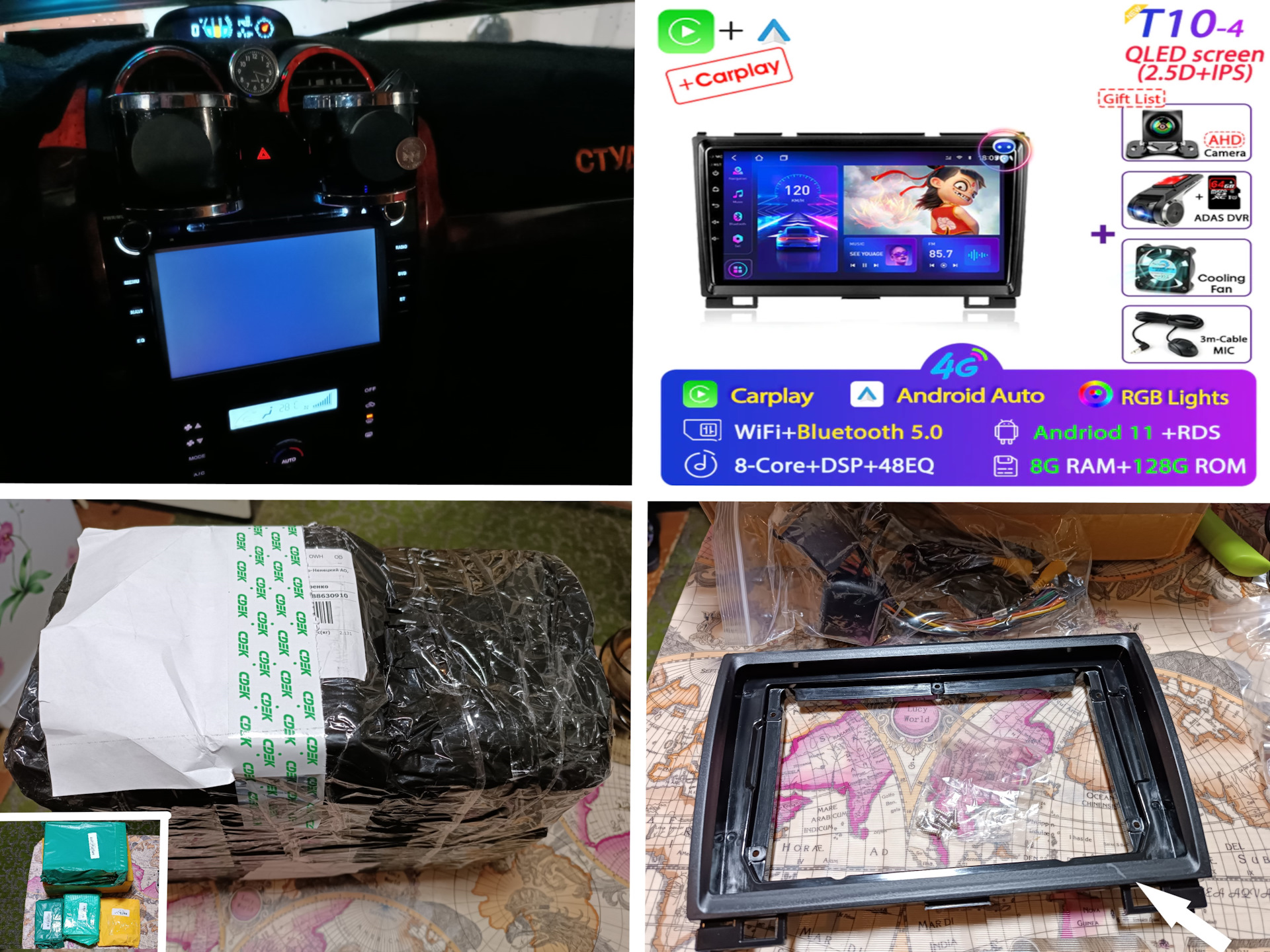 Тизер темы! Магнитолы Jansite T10 от магазина али Srnubi на Hover H5/H3Внезапно умер экран на MAKEDE, кнопки горели и не более случилось это когда что то перемерзло в топливной и приходилось каждые пять метров заново заводить авто глохнувшее, и так добраться с пол км до гаража и заехать в него, а там обнаружил что гавкнулся экран. Разобрал поменял предохранитель на питании и чудо не случилось. Начал изучать предложения на али! MAKEDE брать больше не желал из за переделки проводки родной. Да и не скал её нашел Jansite с кучей подарков и не раздумывая взял её в полной комплектации с складв МСК, а с Китая можно было взять 8/256. Пришла за неделю СДЕК доставил все цело, с кучей мелких коробок упакованных в большой коробке! Из вяленого только мелкая царапина на рамке. Надеюсь полиролью для пластика скроется!