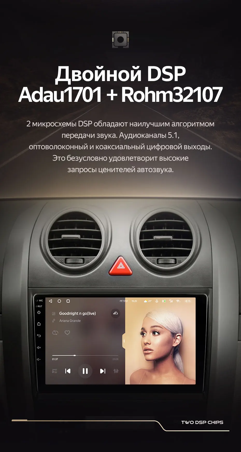 В планах есть разнообразить акустику в автомобиле, путем доустановки саба, усилка и динамиков… Так вот в Teyes стоит отменный цифровой процессор (собсна за него то ты и платишь такие деньги), способный обрабатывать до 16 каналов, увы Jansite на это не способен, ввиду того, что процессор более простенький… Хотя если не сильно с этим заморачиваться, то можно и не тратить столько денег)))