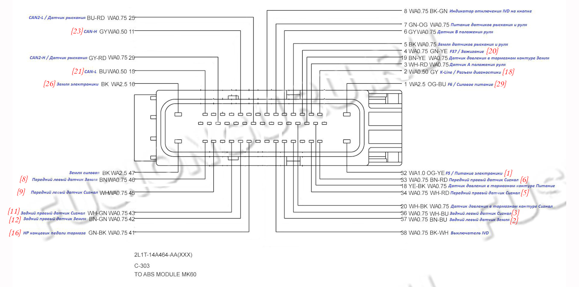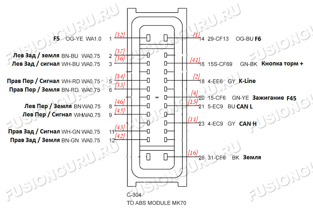 Распиновка блоков абс, красным указал какой провод куда подключать при перепиновке.