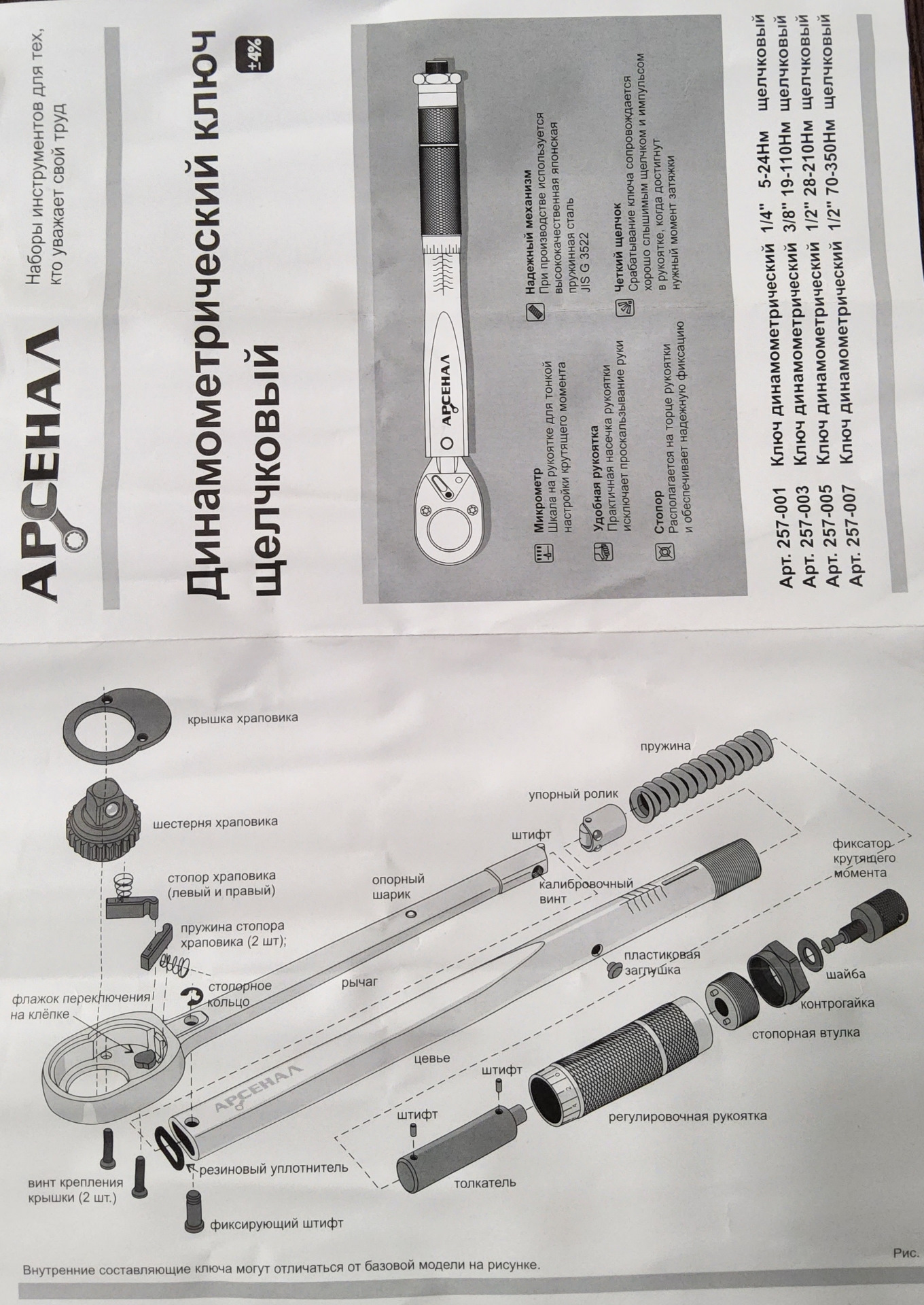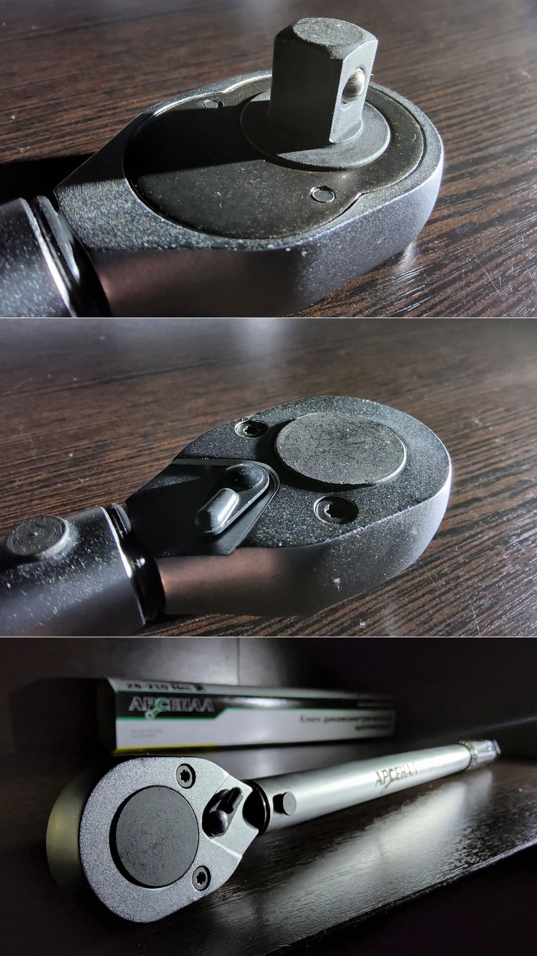 Внимание — ключ не предназначен для затягивания до усёру чего попало. Ключ нужен для контроля затяжки уже затянутых соединений на предмет сохранения затяжки, чтобы быть уверенным, что ничего не ослабло ну и для затяжки колесных болтов после предварительной затяжки всякими крестовинами, балонниками и инерционными ключами. Откручивать болты динамометрическим ключом тоже не стоит, поберегите хороший инструмент, у него другие задачи. Кстати, ключ от АРСЕНАЛа имеет двусторонний храповик, т.е. в нём встроен переключатель вращения как в стандартной трещетке. Можете крутить болты как с правой, так и с левой резьбой и дозатягивать их. Пожалуйста, не тяните ключ дальше после того, как сработал ограничитель, вы так быстро ушатаете инструмент, прививайте себе культуру ремонта!