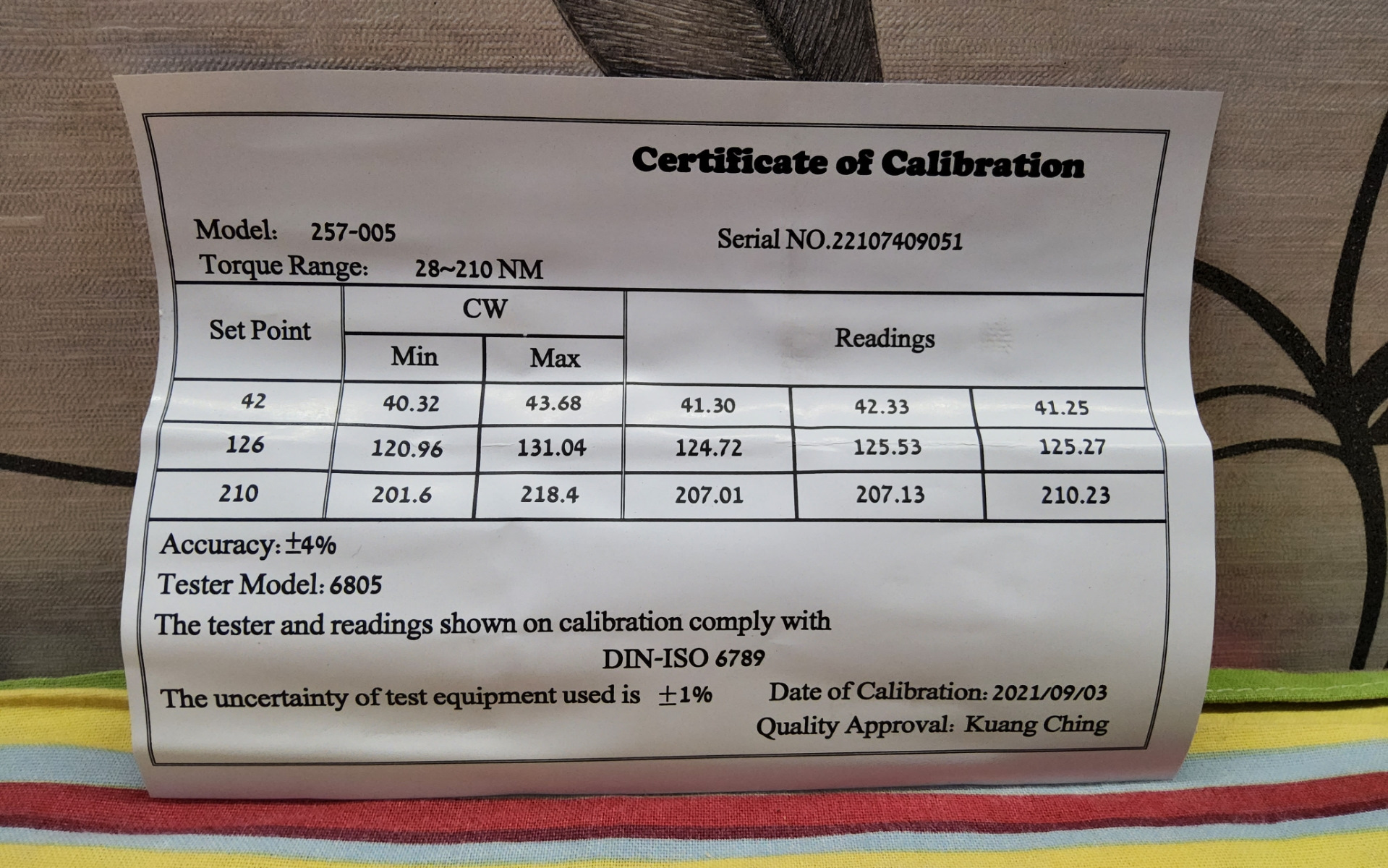 Именно поэтому большое спасибо нашему брату a4viktor в этой записи он сделал проверку своего сертификата. С каждым ключем идет индивидуальный сертификат поверочный с серийным номером ключа. Точность лучше 1% оказалась, лучше чем 4% паспортные. Автодело я инструмент видел, покупал, не понравилось.