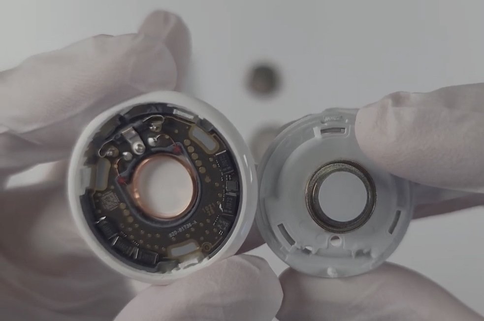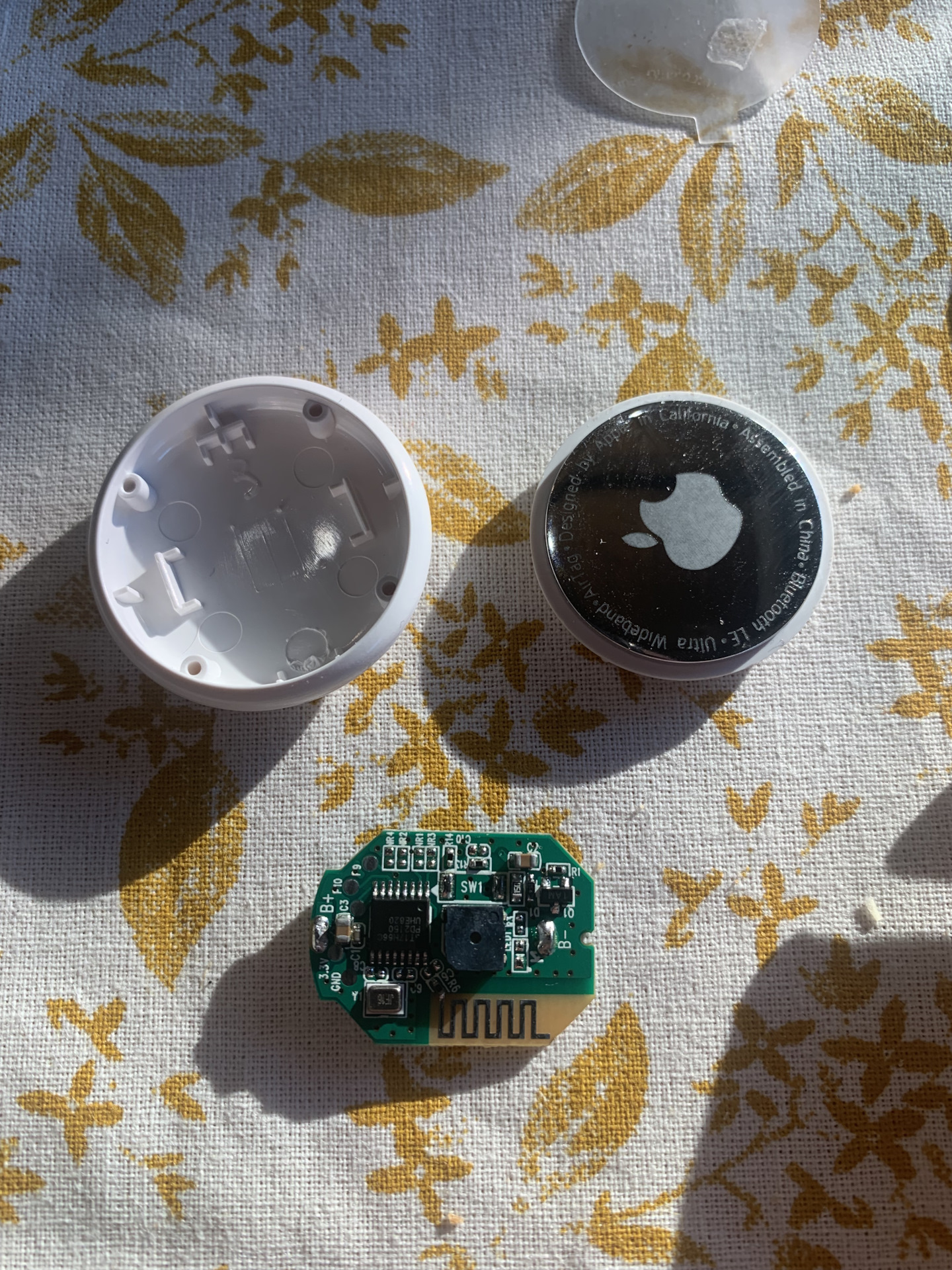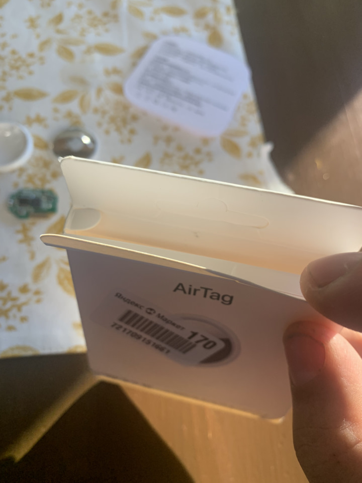Но какого было моё огорчение, что потянув язычок, изолятор батарейки, аиртаг развалился пополам.