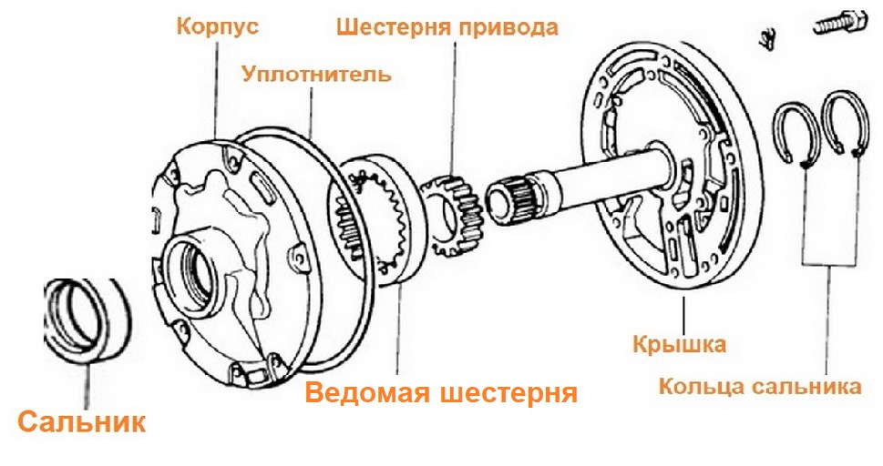 Измеряем расстояние между зубьями шестерни и серповидной частью корпуса насоса.